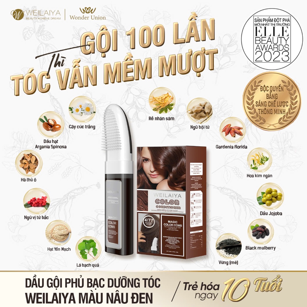 Dầu gội phủ bạc dưỡng tóc WEILAIYA chính hãng, tiện lợi, bền màu, không độc hại, hỏng tóc, gây kích ứng da hộp 100ml