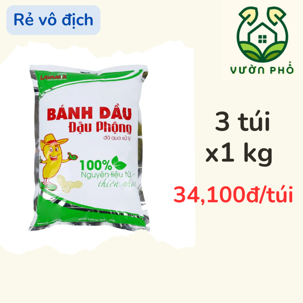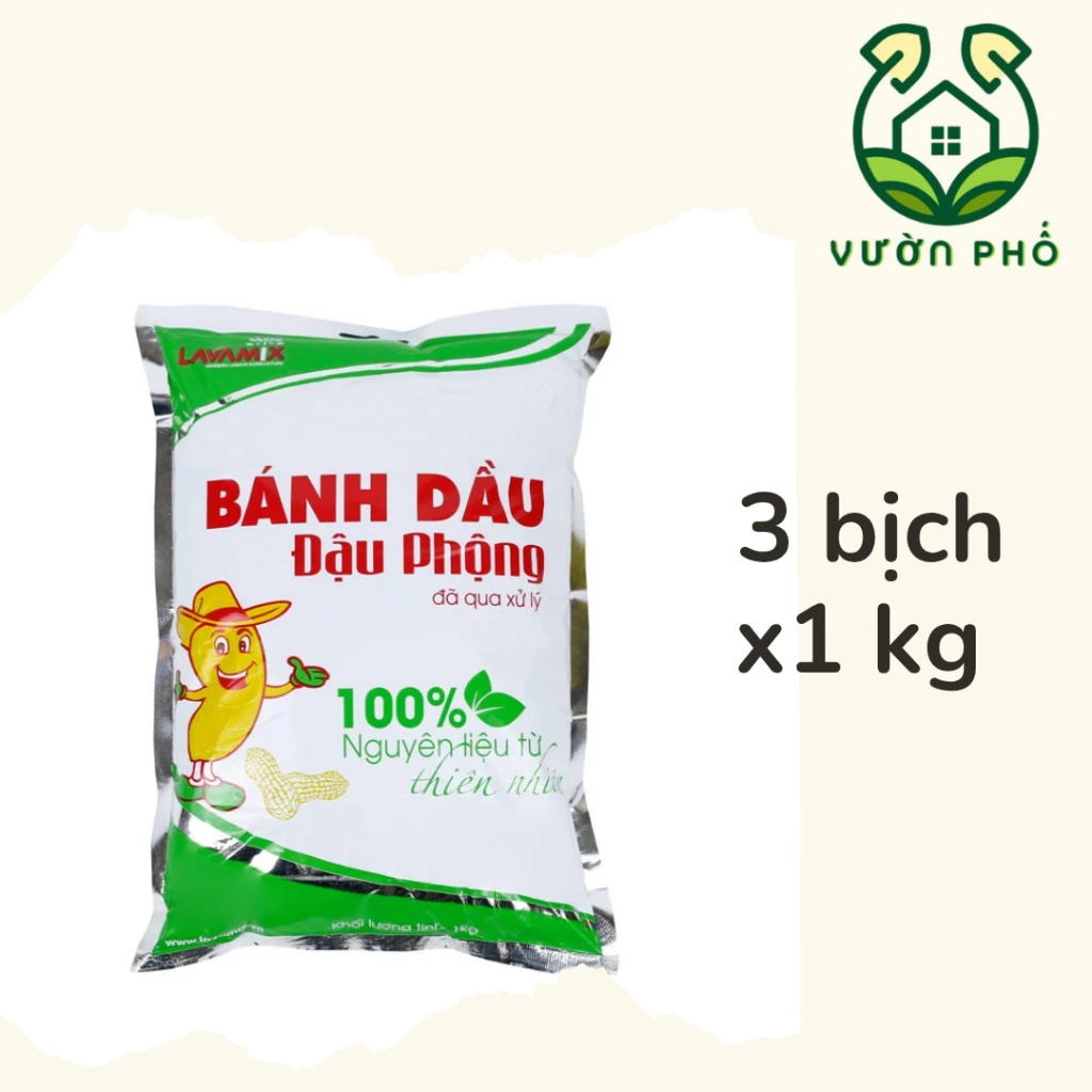 🔥VP🔥SET 3 túi Bánh dầu đậu phộng đã qua xử lý Lavamix 1kg/túi - Phân bón đậu phộng, phân bón hữu cơ