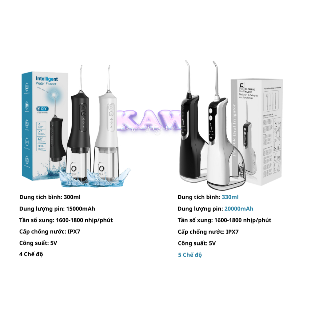 Máy tăm nước KAW cầm tay cao cấp 300ml, bình xịt vệ sinh răng miệng Đầu xoay 360 độ dễ dàng sử dụng