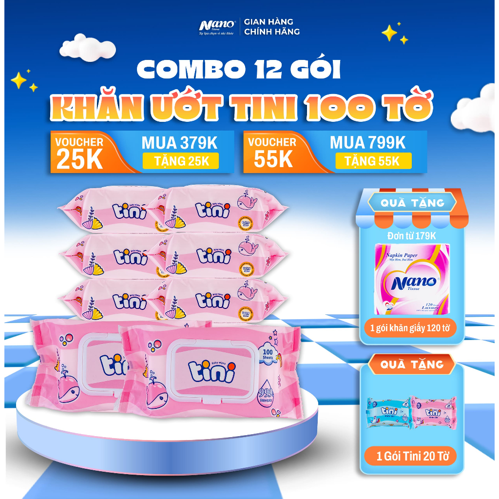 [Giá sỉ] Thùng Khăn Ướt Tini 100 Tờ – Vải Rayon Cao Cấp, Hạt 3D Làm Sạch Sâu, Hương Phấn Dịu Nhẹ, An Toàn Cho Da