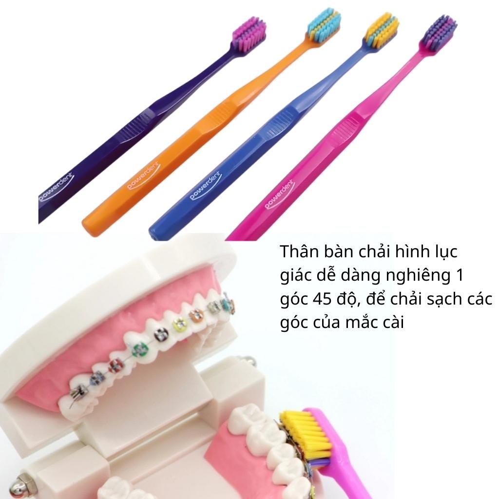 Bàn chải niềng răng Powerdent prosensitive ortho siêu mềm, có rãnh giữa vệ sinh răng niềng chuyên dụng - Dinh Dinh