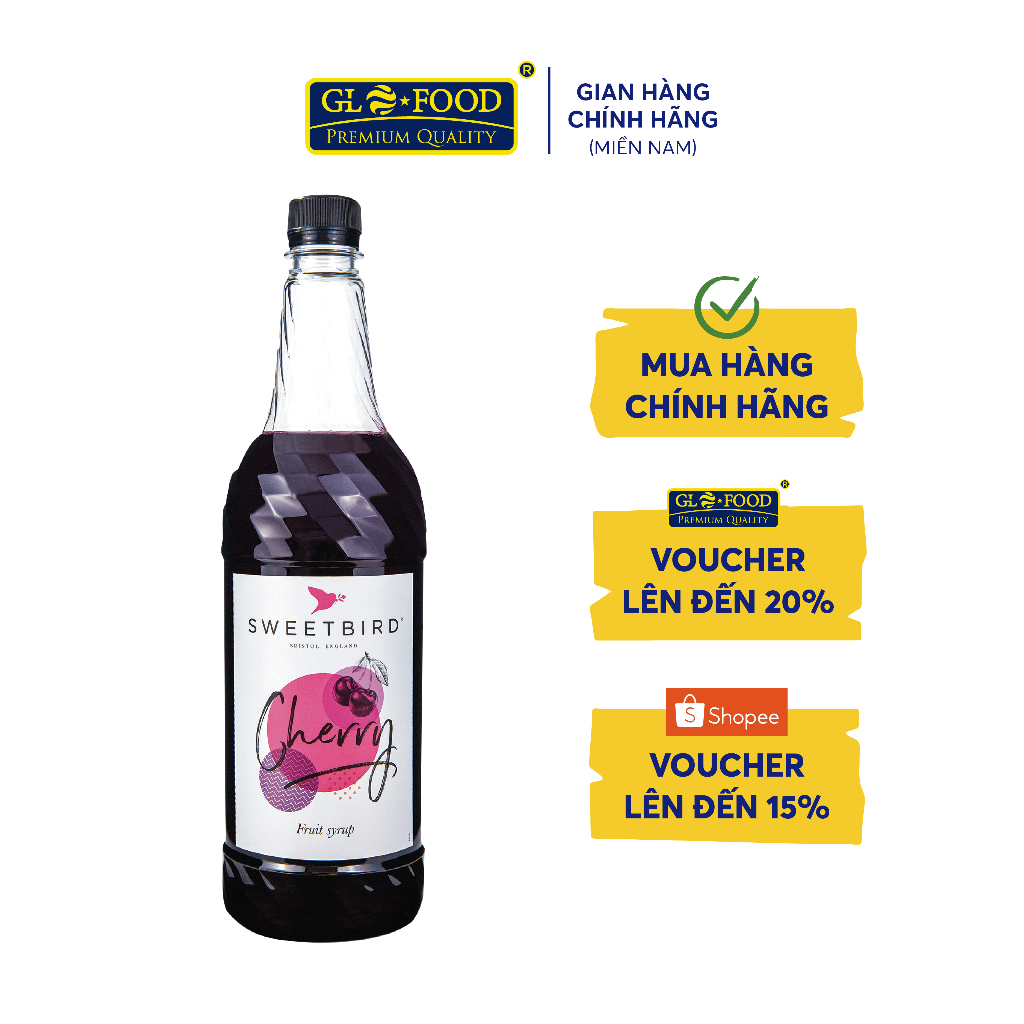 SWEETBIRD CHERRY SYRUP (1L) - Siro Thuần Chay Hương Hoa Anh Đào Nhập Khẩu Anh Quốc