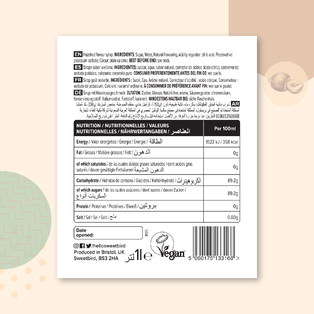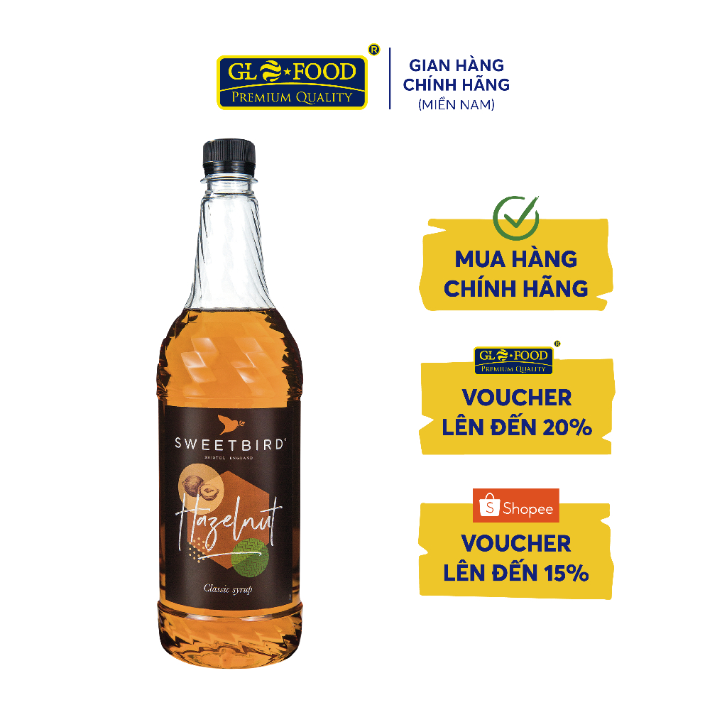 SWEETBIRD HAZELNUT SYRUP (1L) - Siro Thuần Chay Hương Hạt Phỉ Nhập Khẩu Anh Quốc
