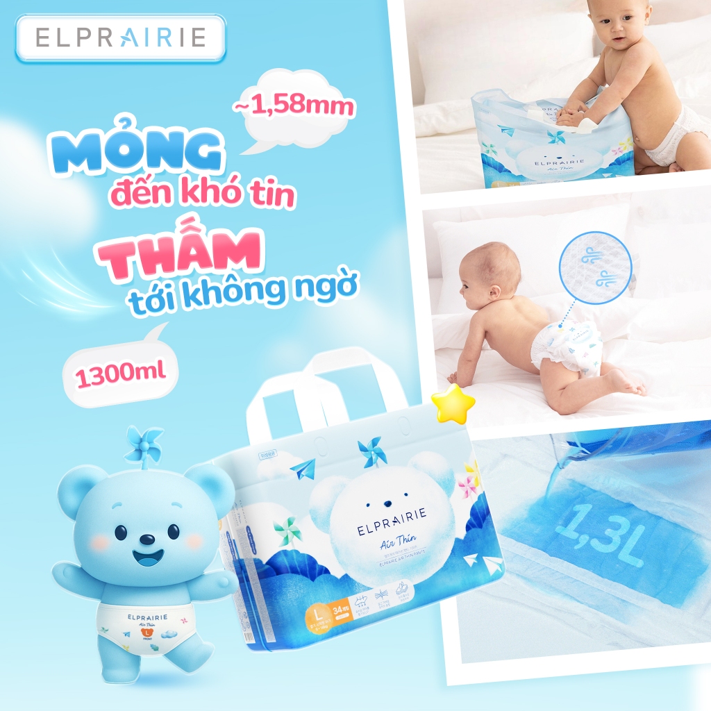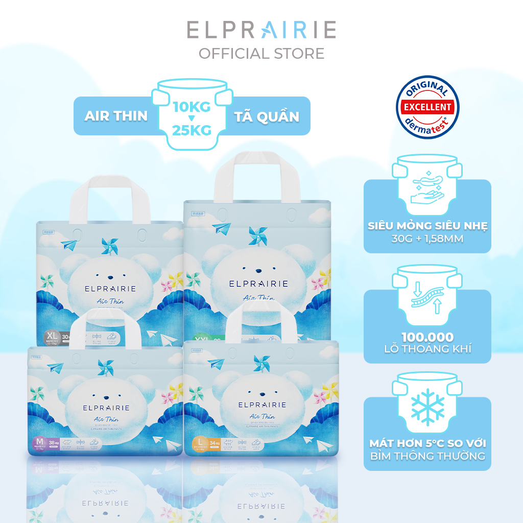 Tã/Bỉm Quần ELPRAIRIE Air Thin Nội Địa Hàn Siêu Mỏng Siêu Thấm Hút, Mềm Mại Chống Hăm L34-XL30-XXL26 Cho Bé Từ 9-25Kg