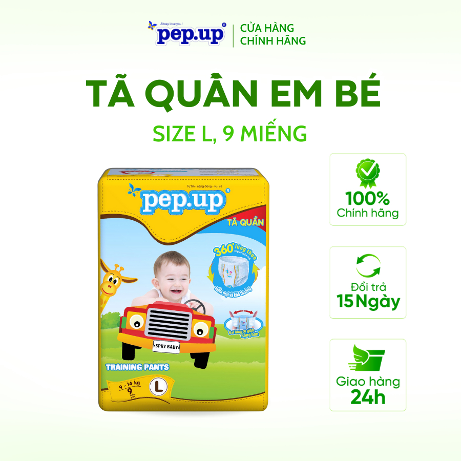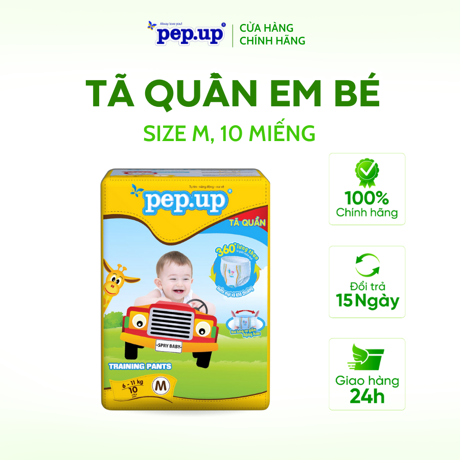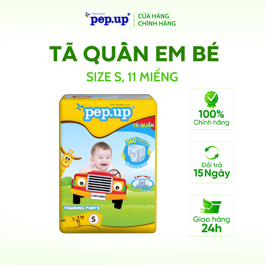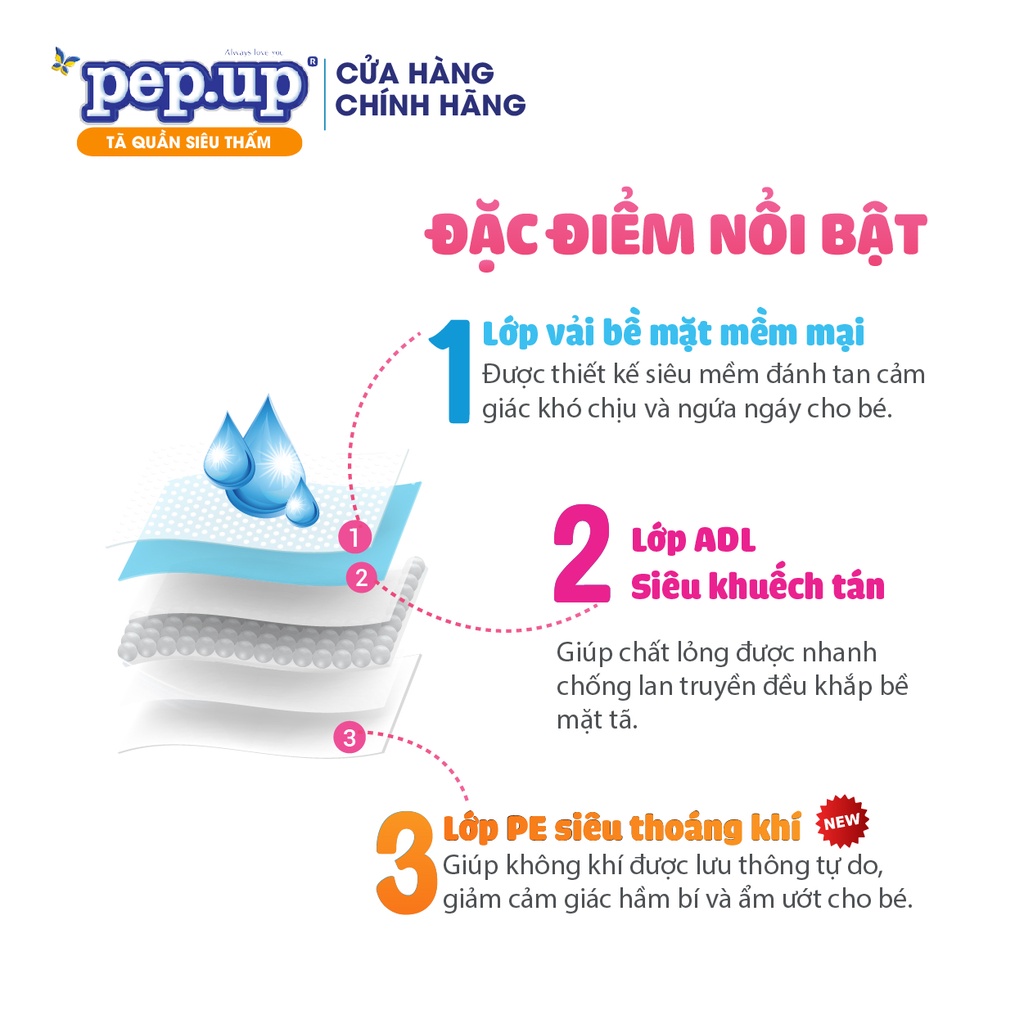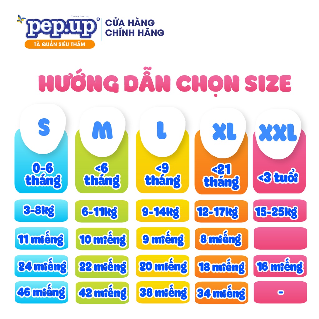 Tã/Bỉm Quần Em Bé Pep.up Extra Dry Siêu Mềm Mại, Siêu Khô Thoáng, Kháng Khuẩn Size S11, M10, L9, XL8