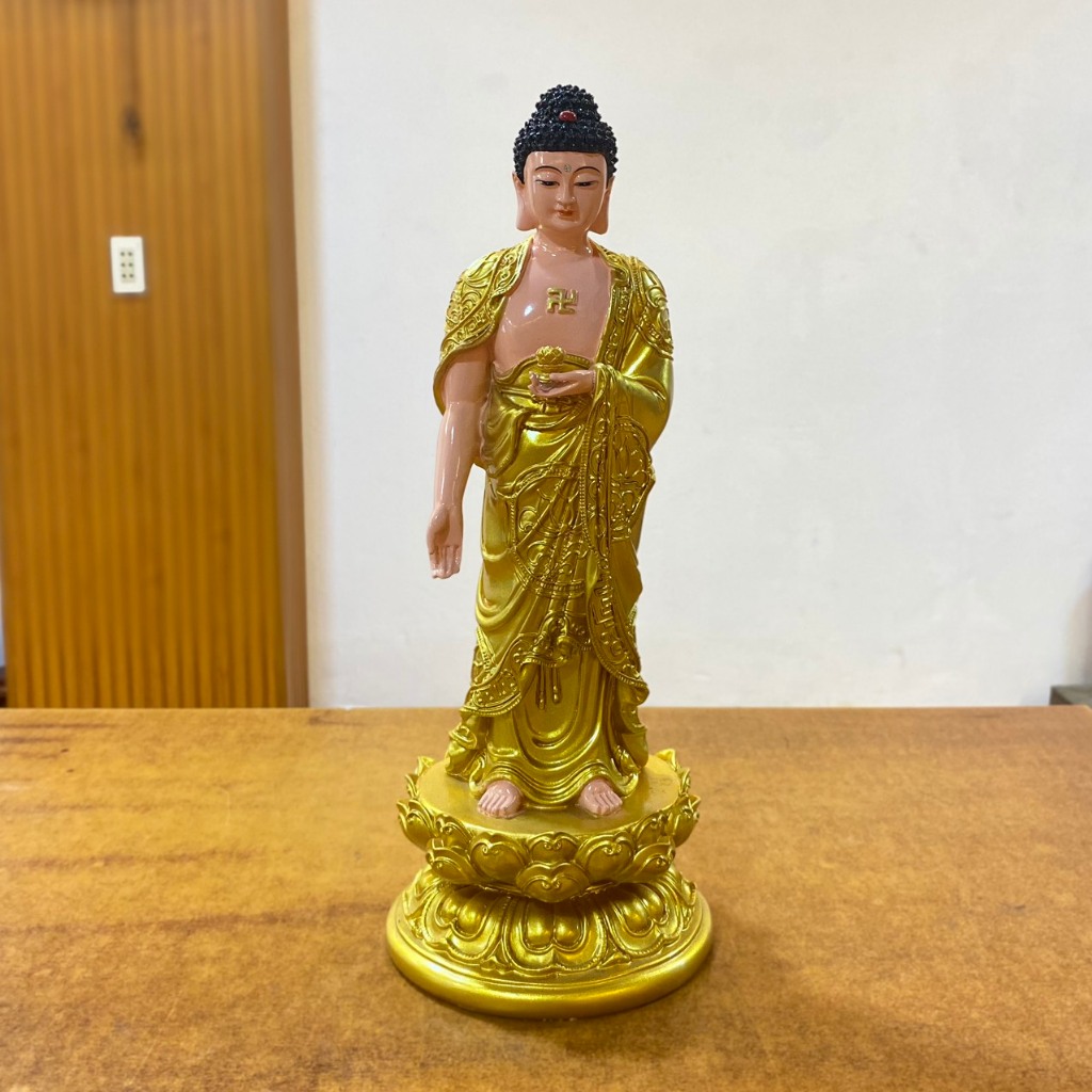 Tôn Tượng Phật A Di Đà Đứng Cao 40cm , 50cm Áo Vàng Vẽ Nhựa Composite