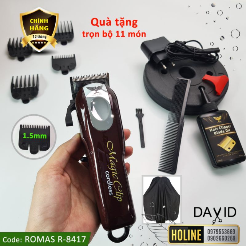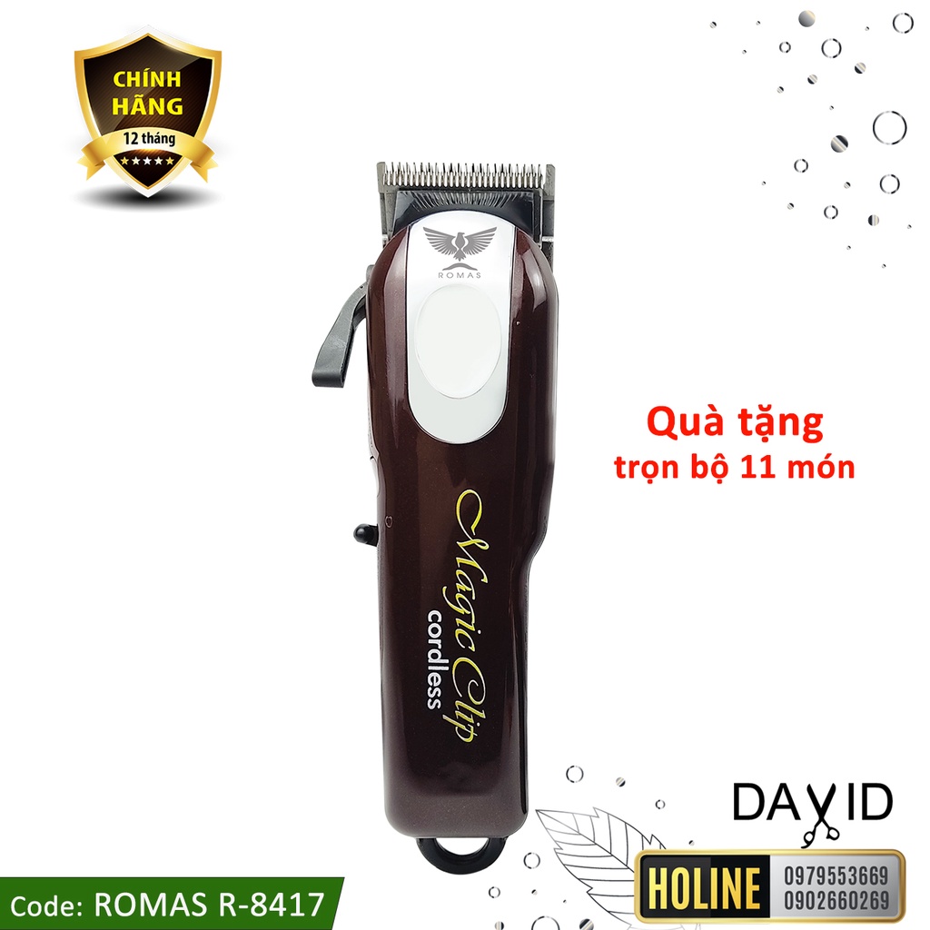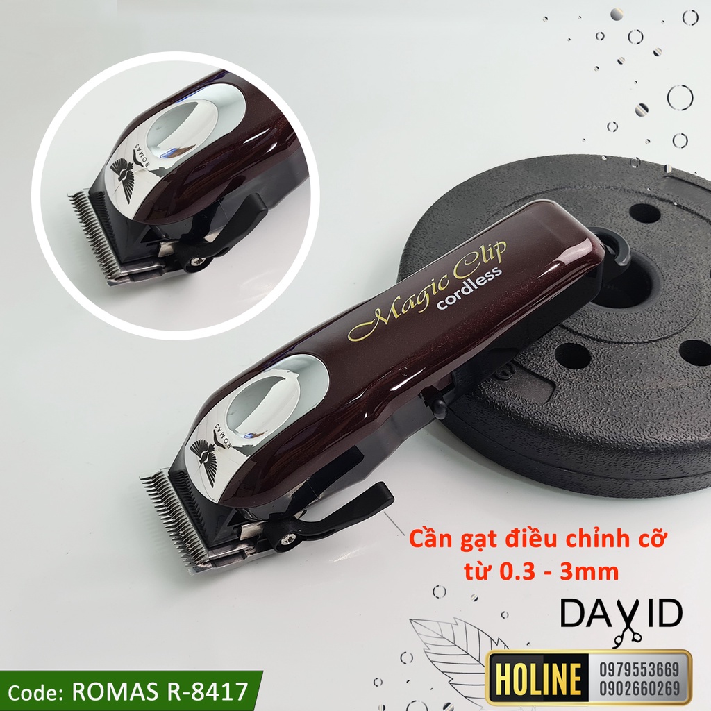 Tông đơ cắt tóc Romas magic clip R8417, pin siêu lâu,động cơ mạnh êm bên