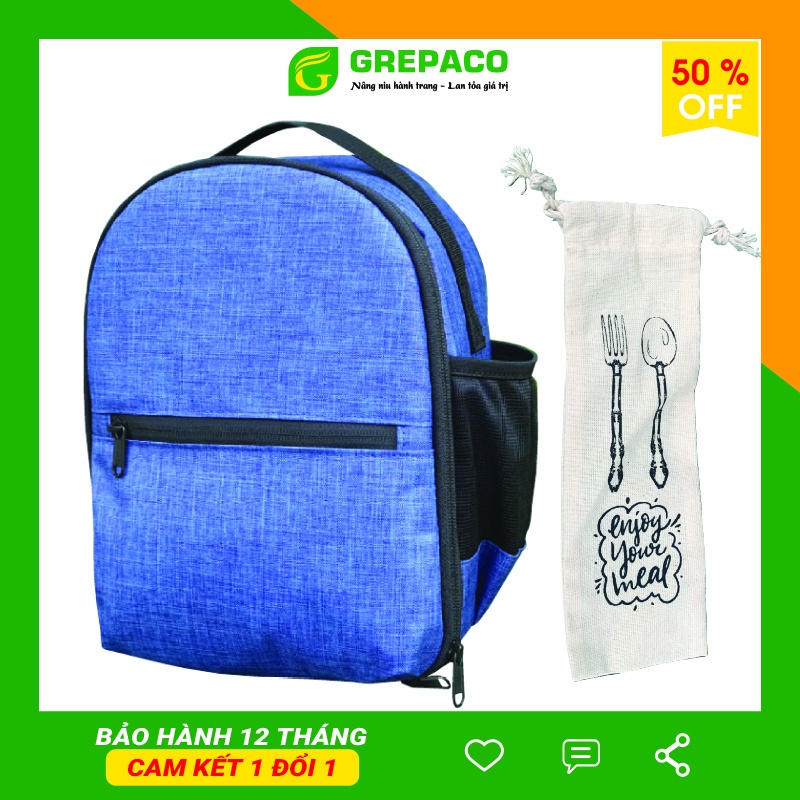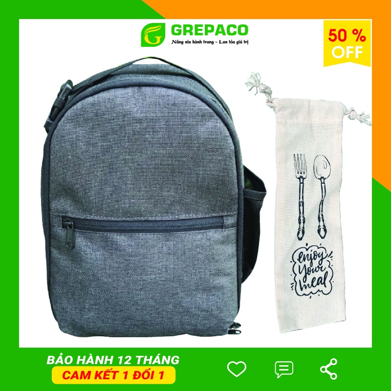 Túi đựng hộp cơm giữ nhiệt văn phòng size lớn tròn trụ giao hàng ly bình sữa mini thức ăn GREPACO TC02 - Tặng túi muỗng