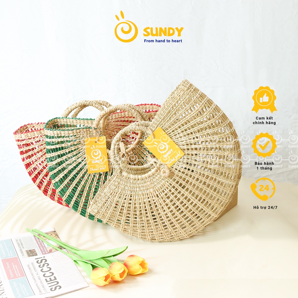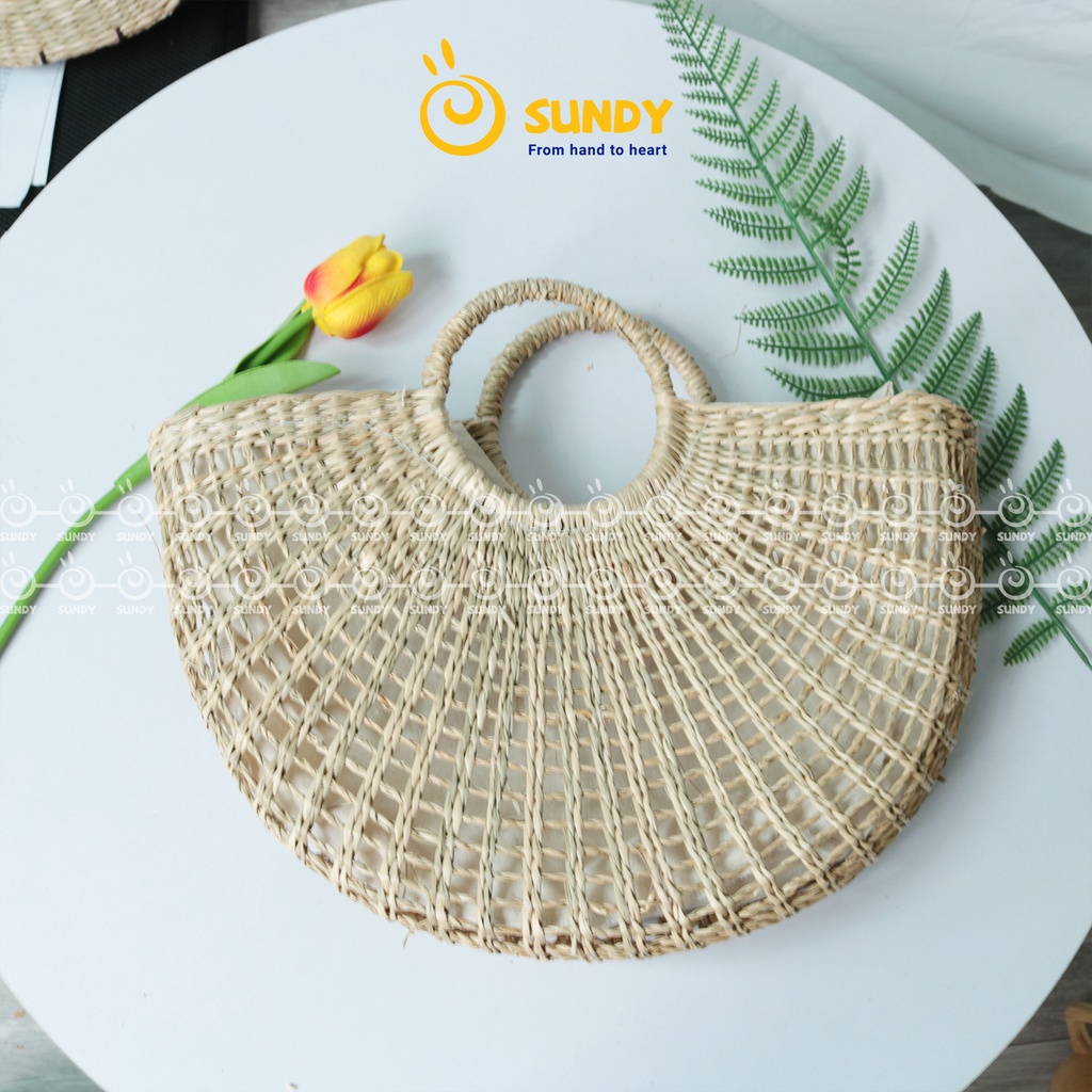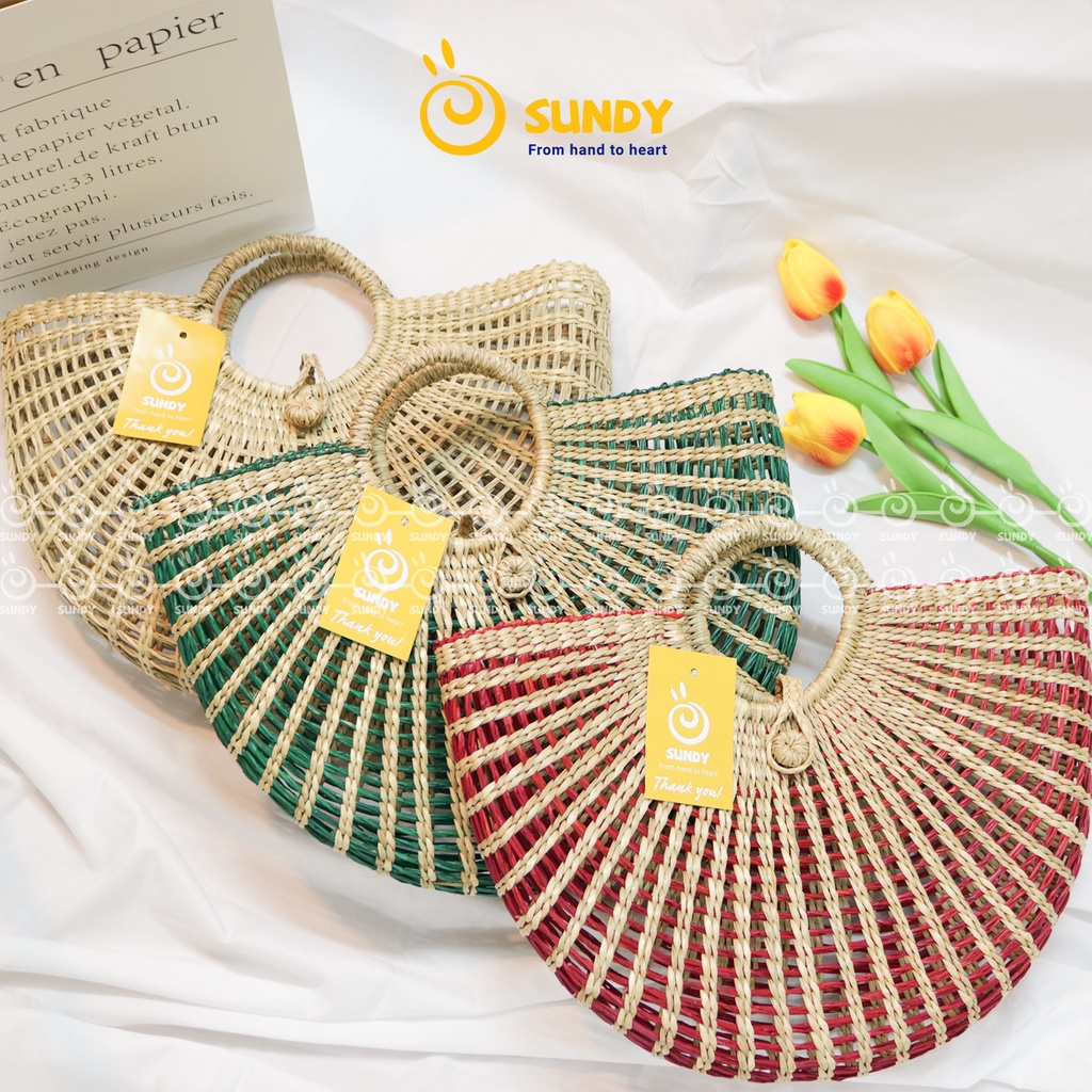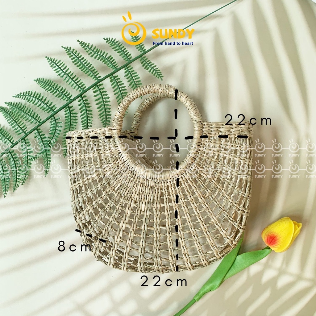 Túi Cói Dẻ Quạt SUNDY Chất Liệu Tự Nhiên, Thiết Kế Đơn Giản, Thời Trang Vintage, Phù Hợp Đi Biển, Du Lịch-TC007