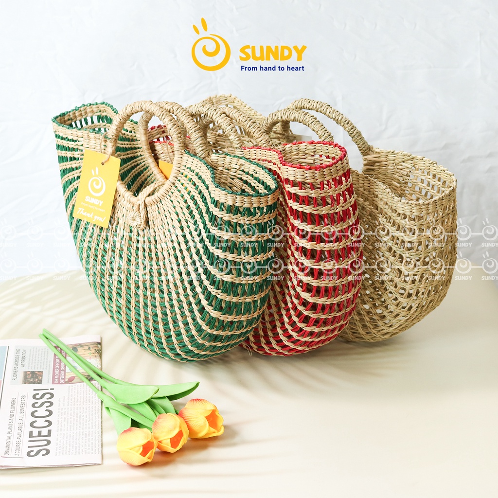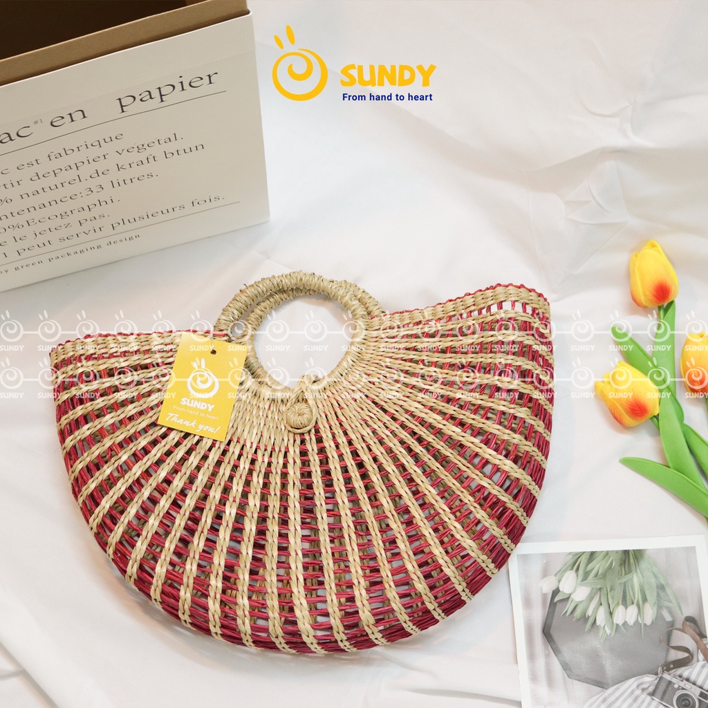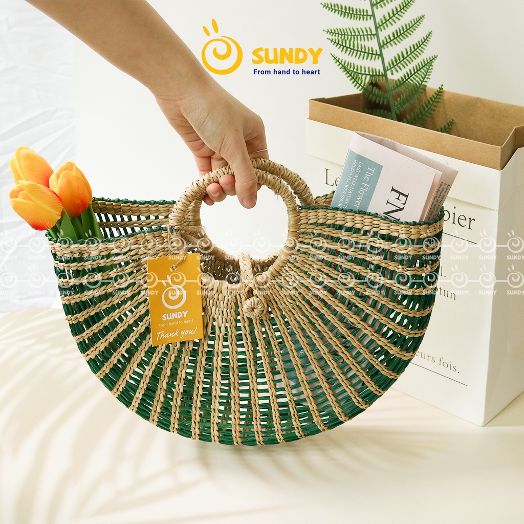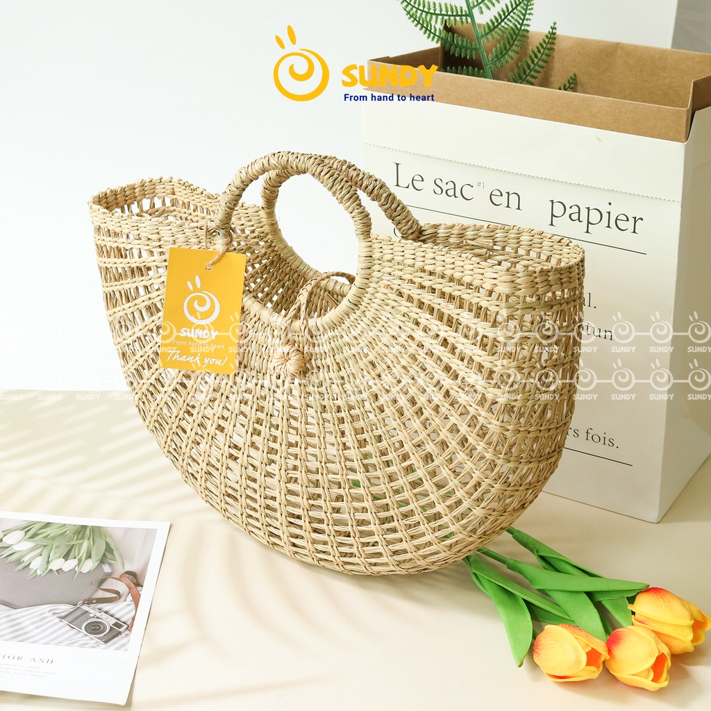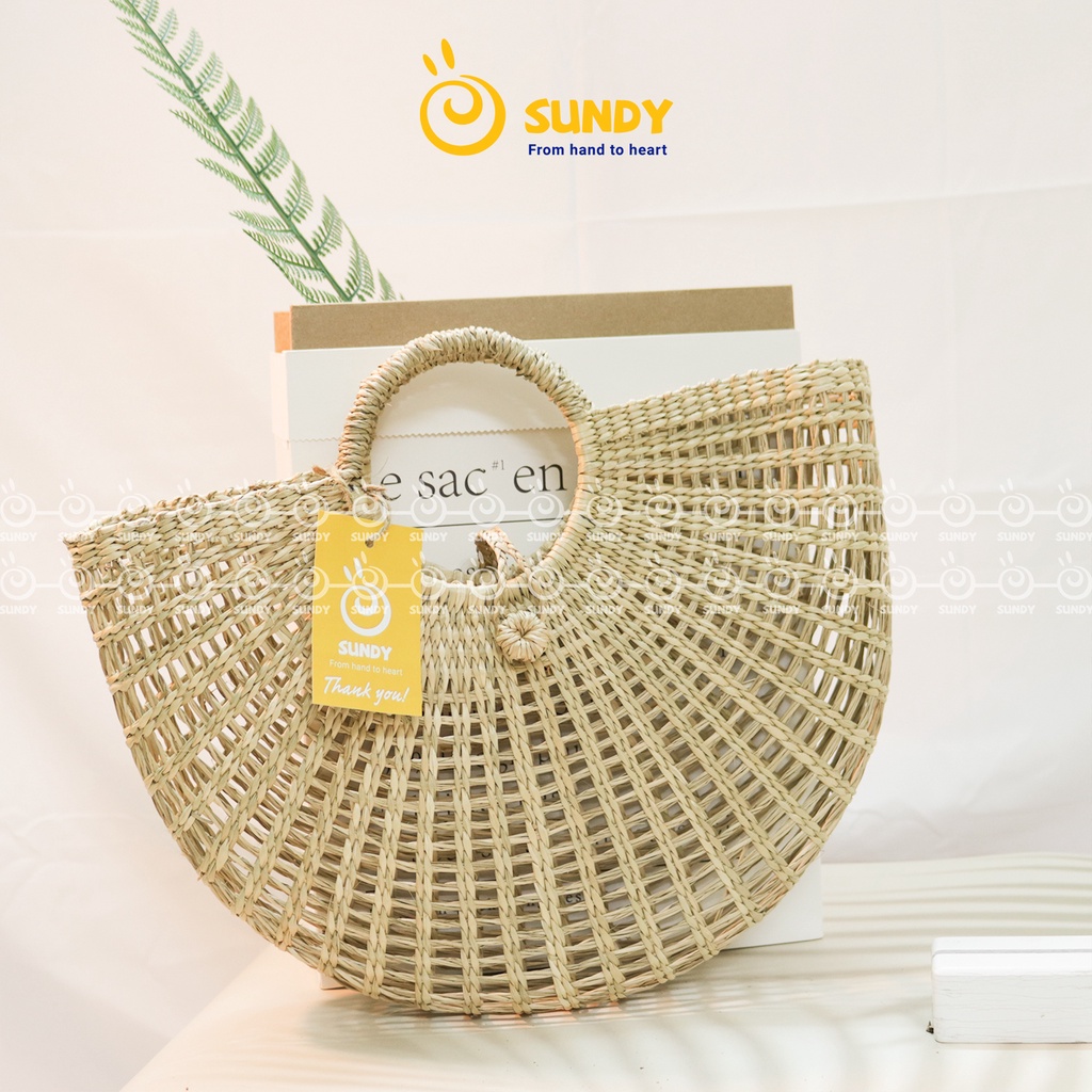 Túi Cói Dẻ Quạt SUNDY Chất Liệu Tự Nhiên, Thiết Kế Đơn Giản, Thời Trang Vintage, Phù Hợp Đi Biển, Du Lịch-TC007