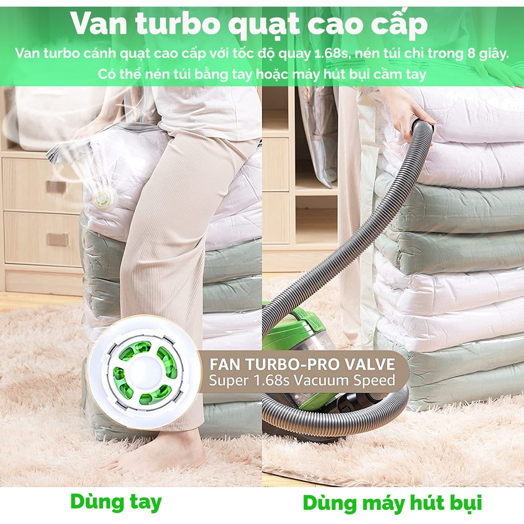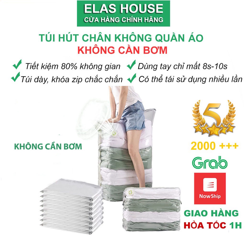 Túi hút chân không đựng quần áo để bọc chăn màn túi hút chân không không cần dùng bơm 2 lớp khóa zip Elas House