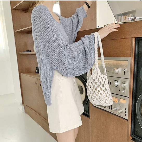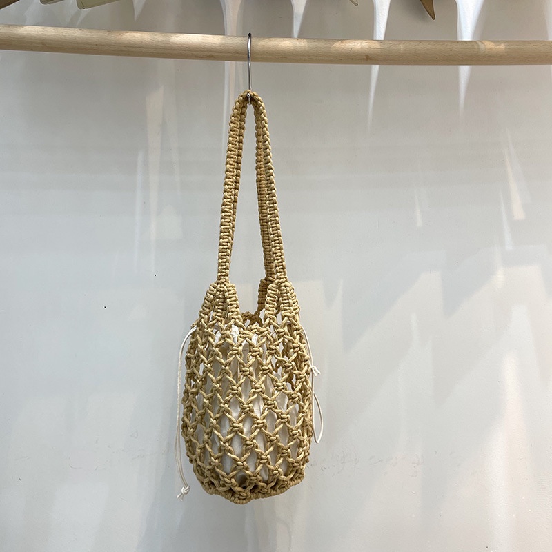 Túi lưới đeo vai bằng cotton thời trang mùa hè dùng khi đi biển 2021