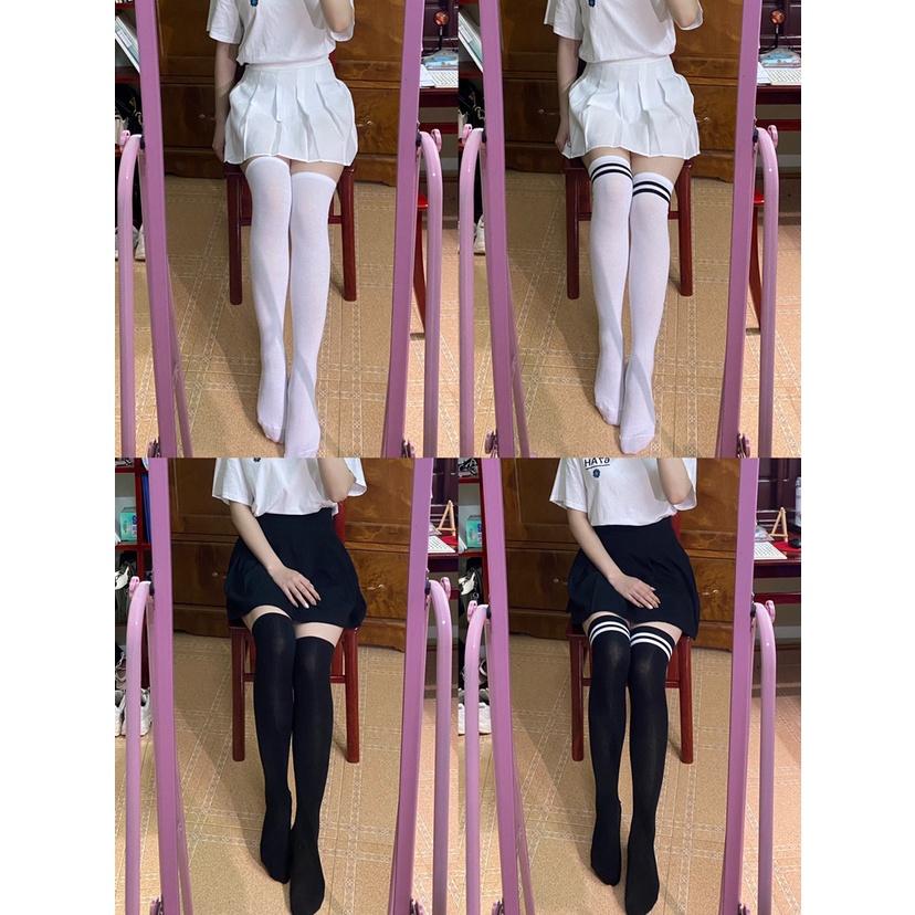 Tất đùi nữ cao cổ, vớ dài qua gối phong cách Hàn Quốc loại dày dặn 83% cotton giữ ấm chân, chống nắng 4 mùa - Tất 55cm