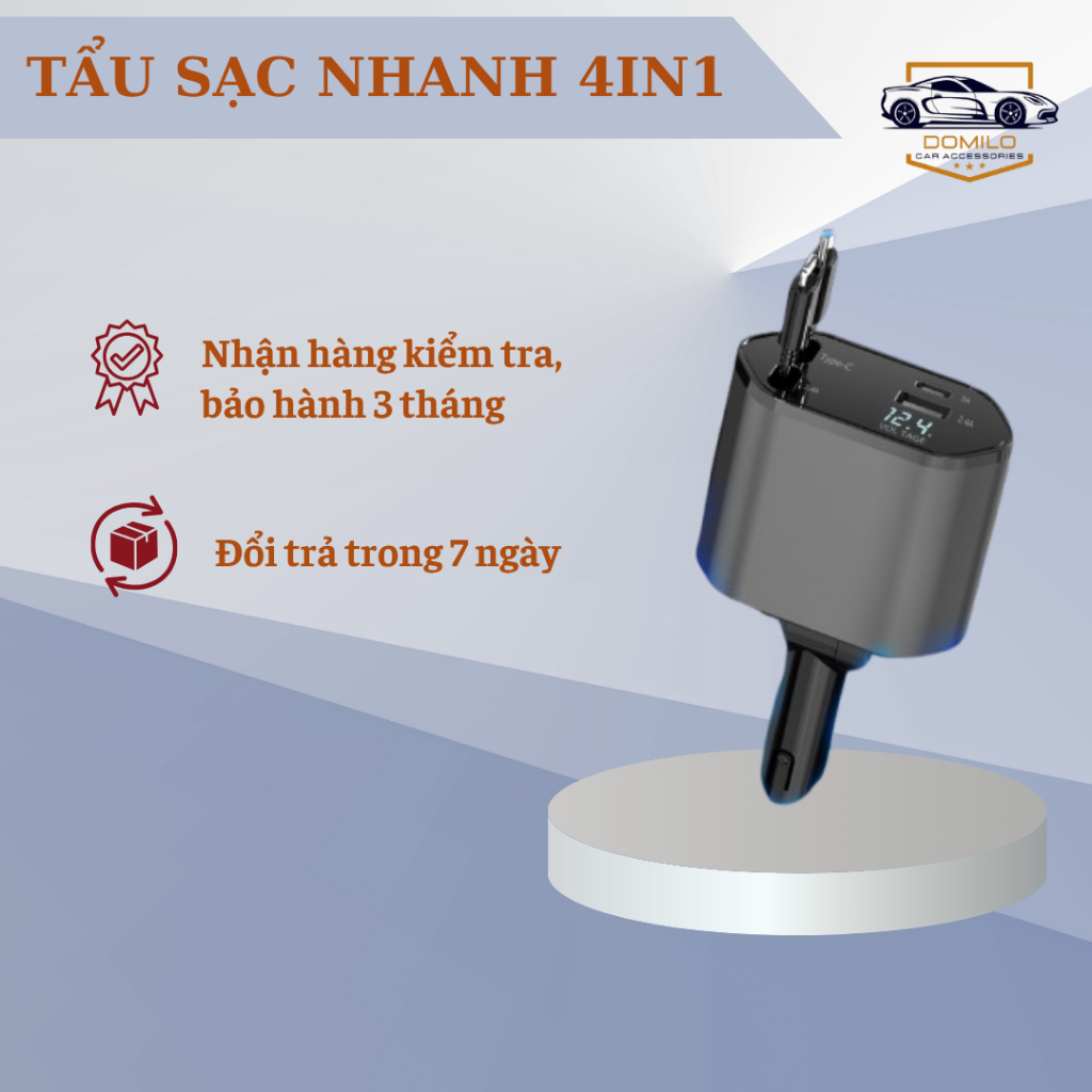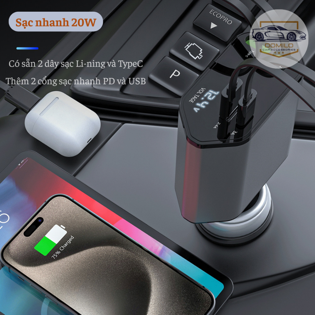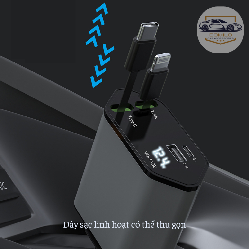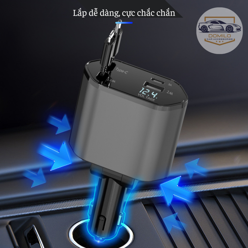 Tẩu Sạc Xe Hơi 120W Siêu Nhanh – Tẩu Sạc Âm - Tẩu Sạc Đa Cổng Co Giãn