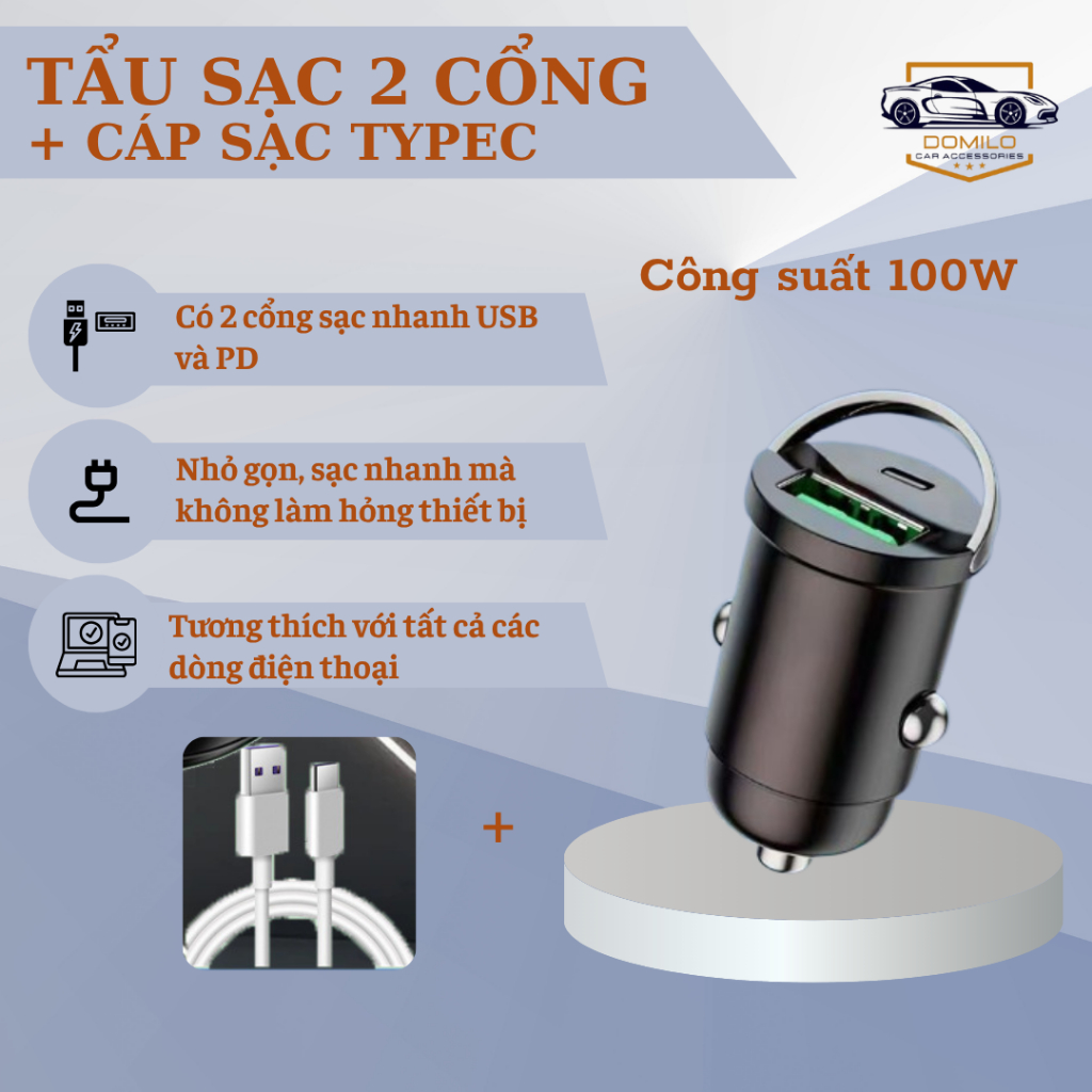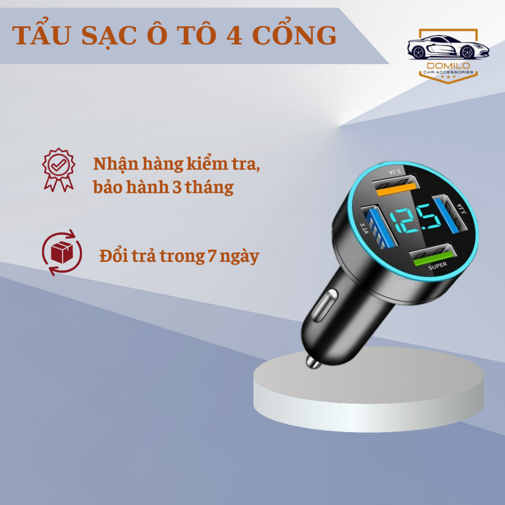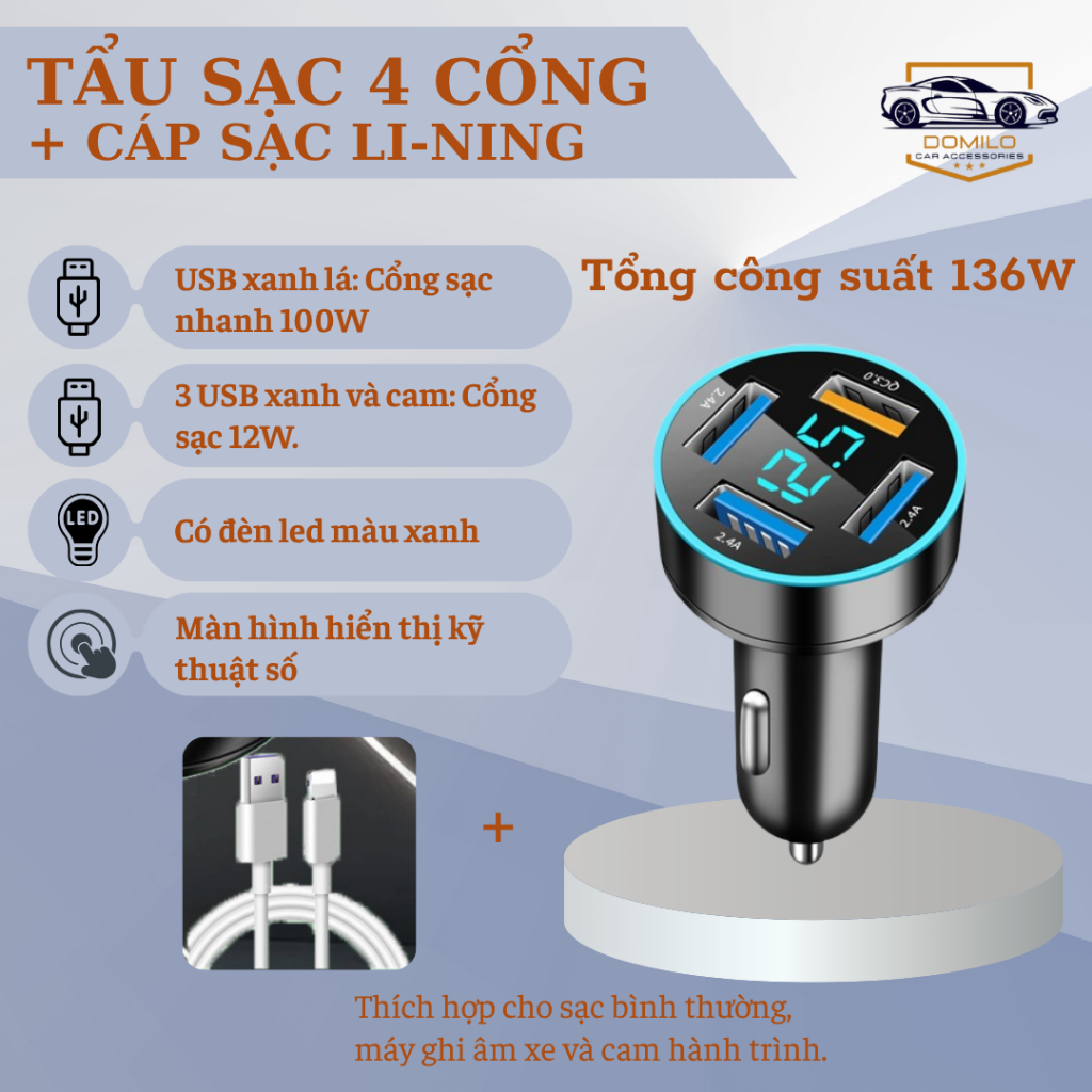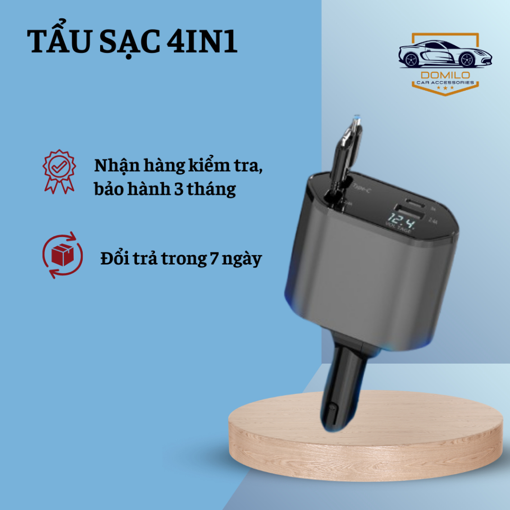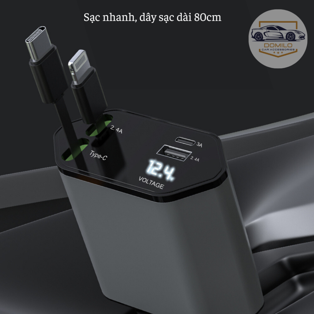 Tẩu Sạc Xe Hơi 120W Siêu Nhanh – Tẩu Sạc Âm - Tẩu Sạc Đa Cổng Co Giãn