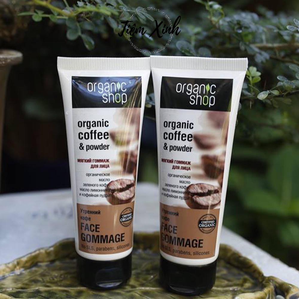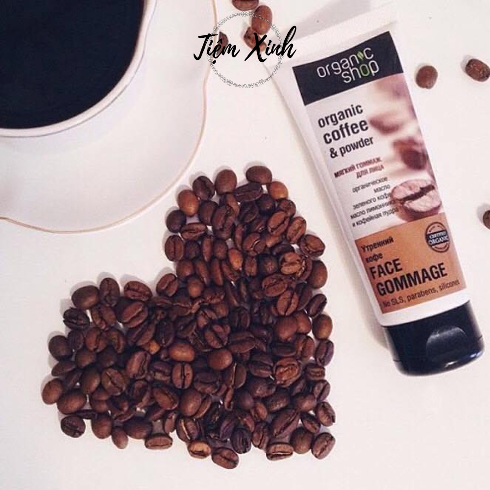 Tẩy Tế Bào Chết Da Mặt Organic Shop Nga Tuýp 75ml Face Gommage Tẩy Da Chết Chiết Xuất Cà Phê Tự Nhiên An Toàn Cho Da Mặ