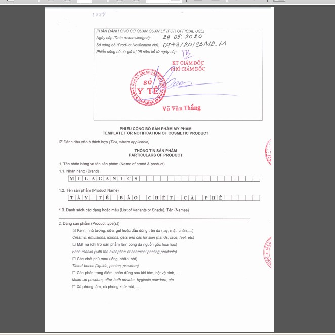 Tẩy tế bào chết body Cà phê Milaganics 280g