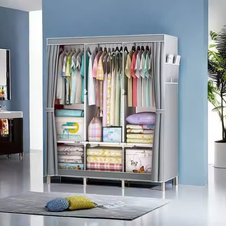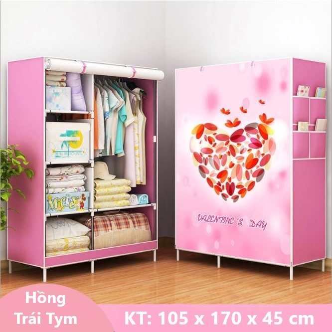 Tủ quần áo tủ vải khung inox chống gỉ, tủ đựng quần vải tủ vải khung thép họa tiết 3D nổi nhập khẩu