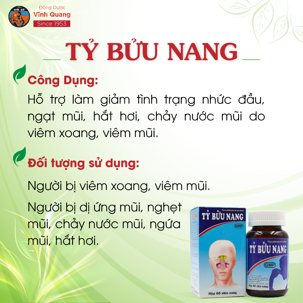 Tỷ Bửu Nang VĨNH QUANG - Viêm xoang, Viêm mũi dị ứng, Nghẹt mũi, Chảy nước mũi - Hộp 60 viên