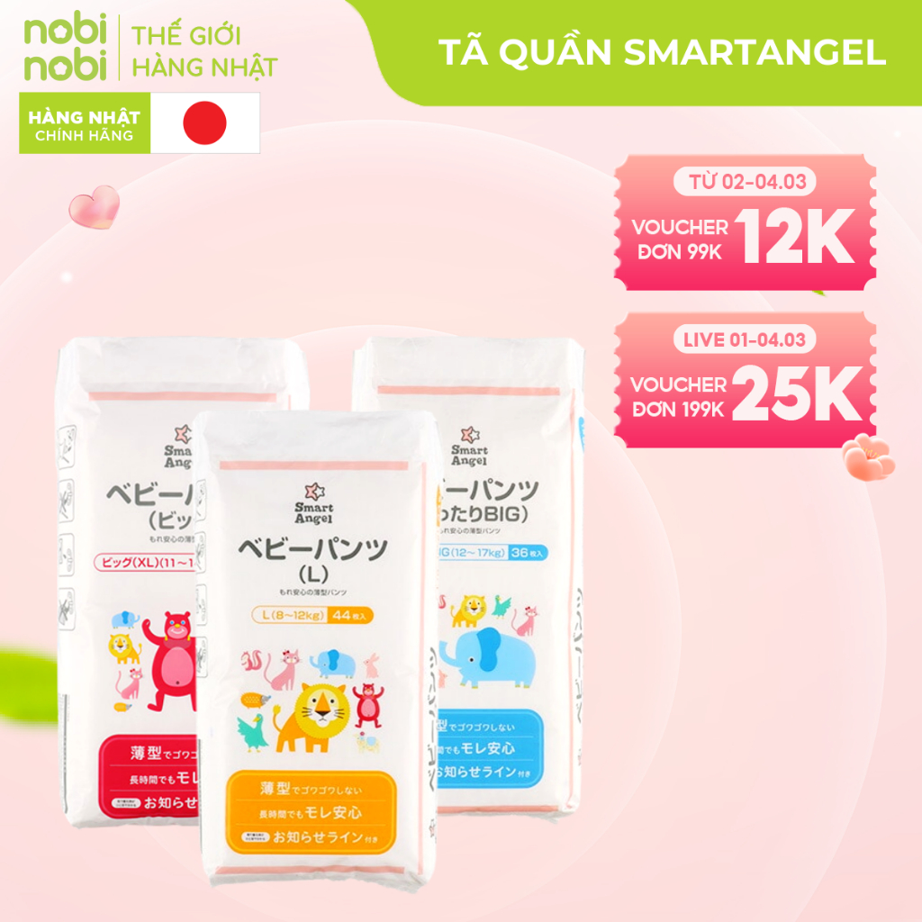 (Tặng khăn ướt) Tã Quần SmartAngel Đệm Thông Khí 3D cho Bé L44/XL38/XXL36