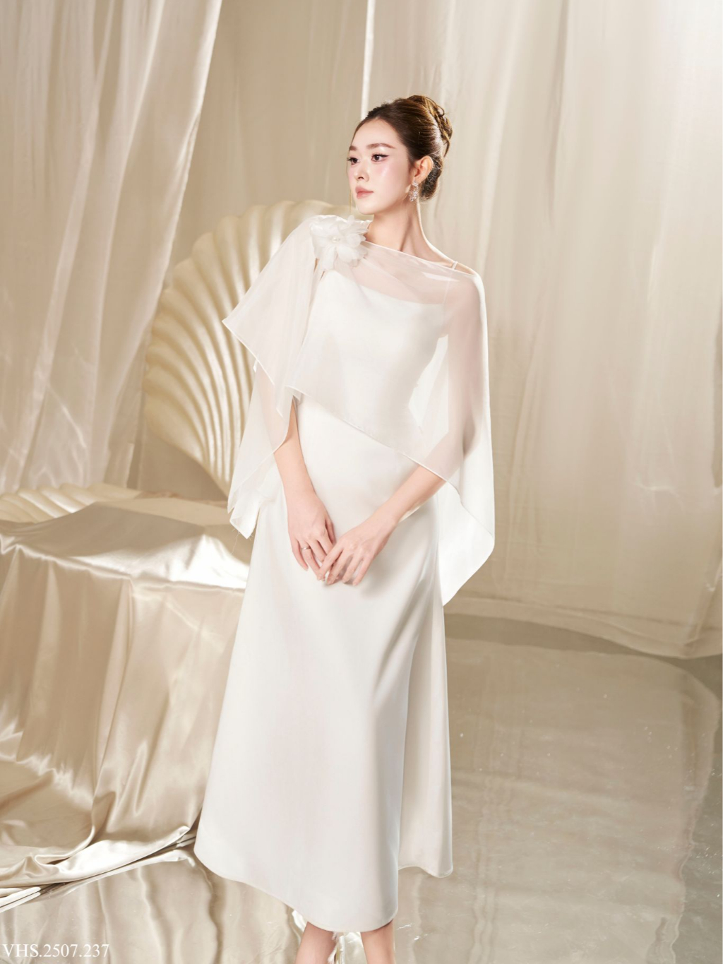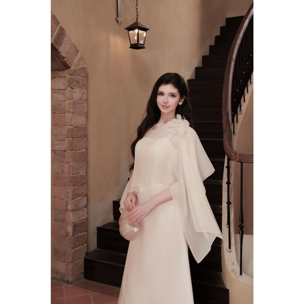 TIINSTORE x TƯỜNG SAN Váy đầm lụa 2 dây dáng dài phối áo tơ hoa sang chảnh dự tiệc VHS.2507.237