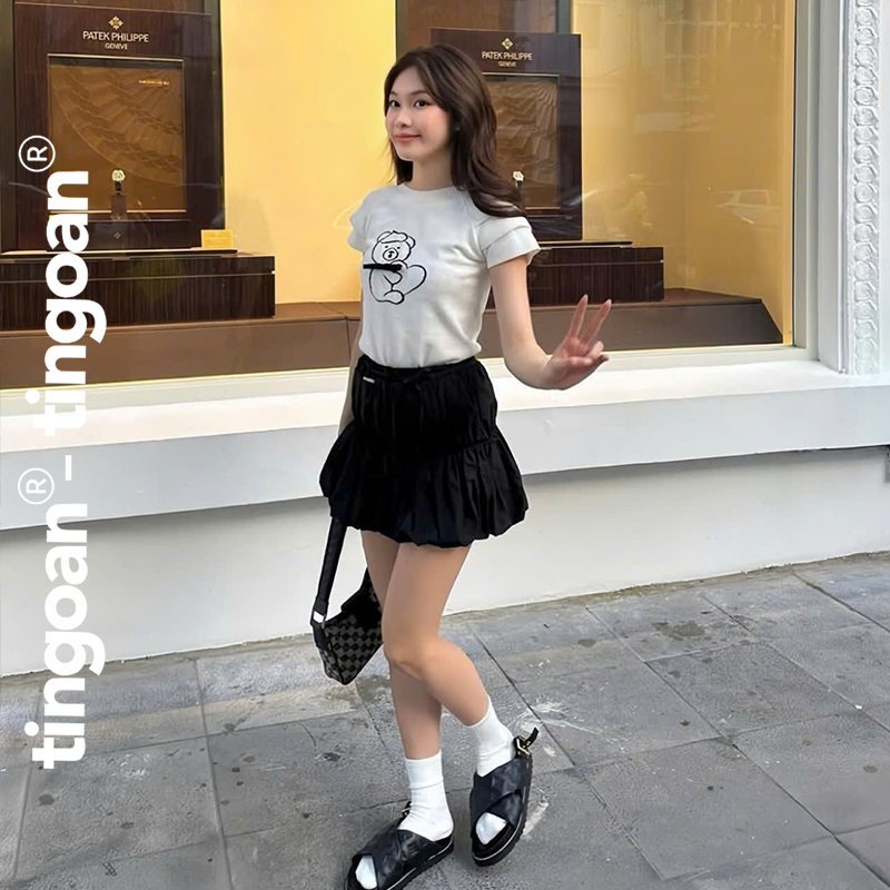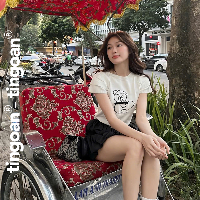 TINGOAN® - Áo len xù dáng lửng ngắn tay thêu hình gấu trắng BABY BEAR TOP /WH PHIÊN BẢN MỞI NHẤT T2.2025