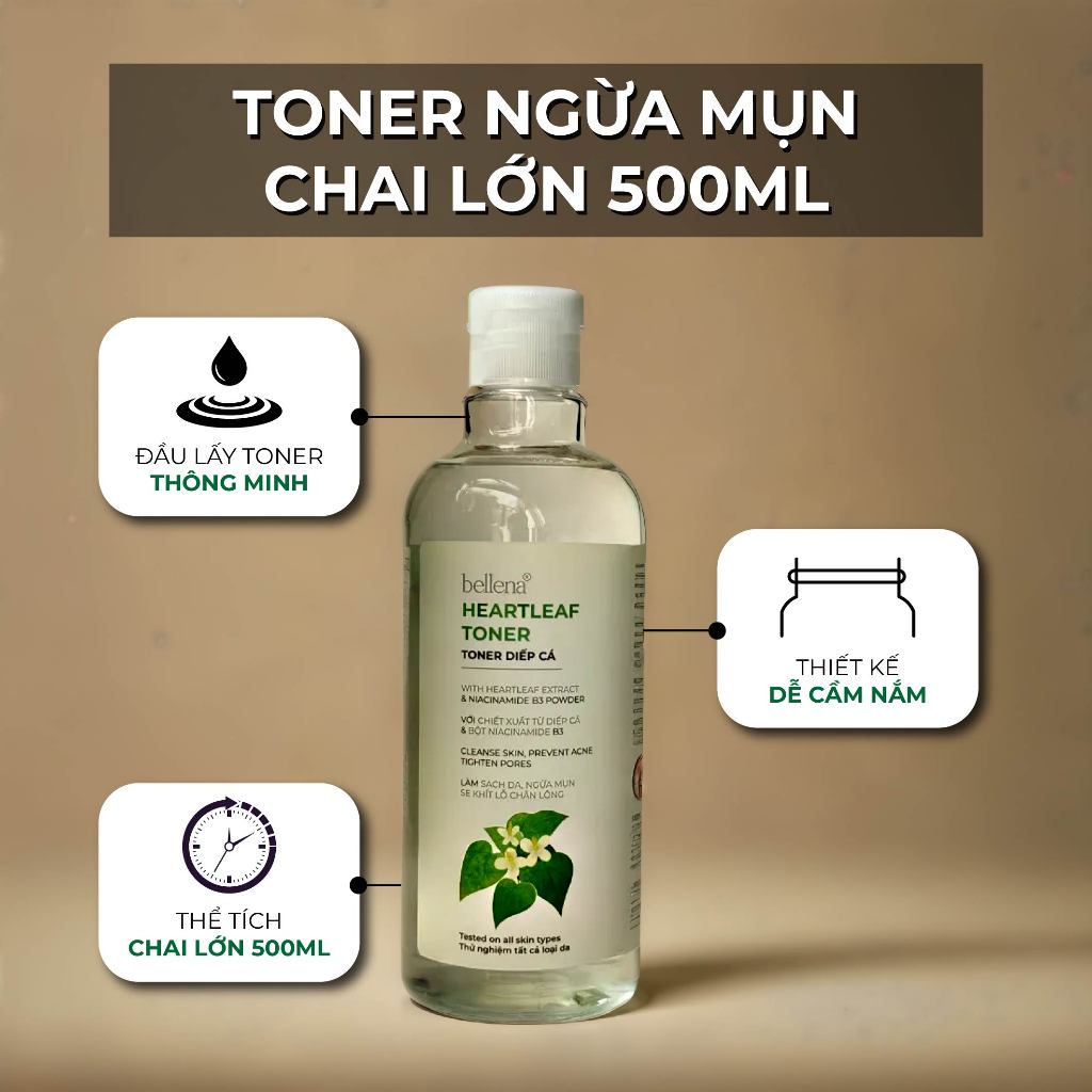Toner diếp cá cho da dầu mụn nước hoa hồng diếp cá Bellena Heartleaf Toner 500ml