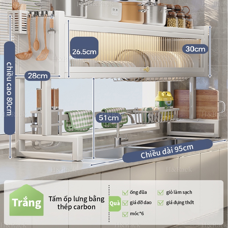 🏠️H&Rack kệ chén có nắp đậy 2 tầng ,Đa Năng Thông Minh Nhà Bếp Trên Bồn Rửa 2 màu
