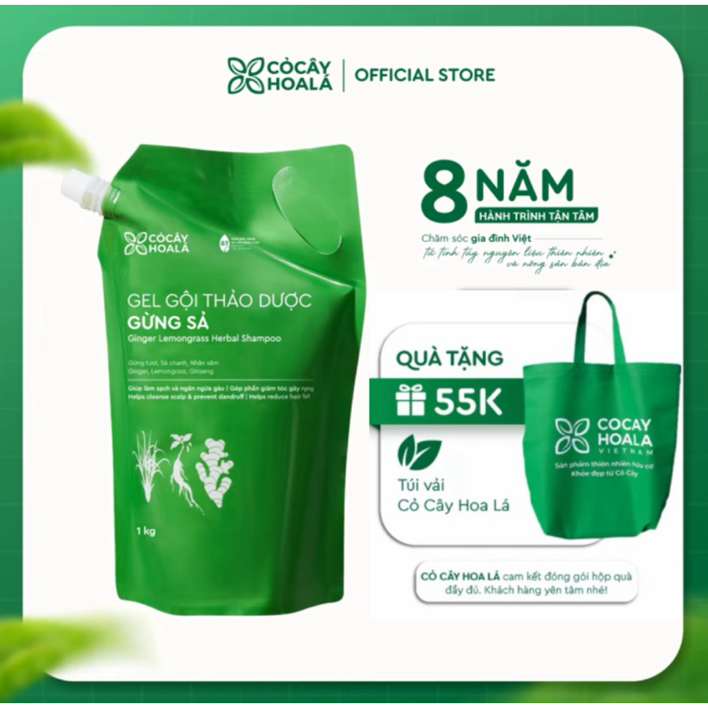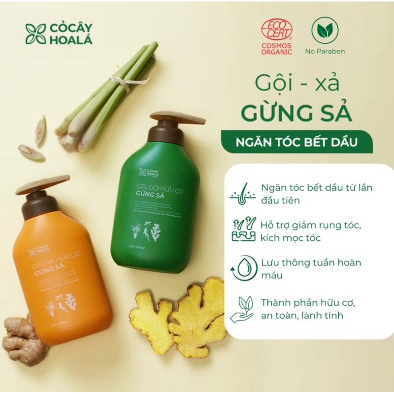Combo Dầu Gội Gừng Xả Hữu Cơ Gừng Sả Cỏ Cây Hoa Lá 1000g, Hỗ trợ Giảm Dầu Bết tóc và giảm gàu ngứa