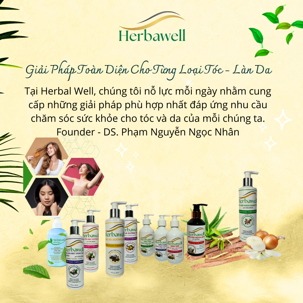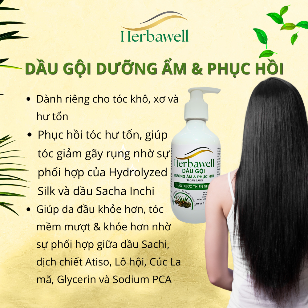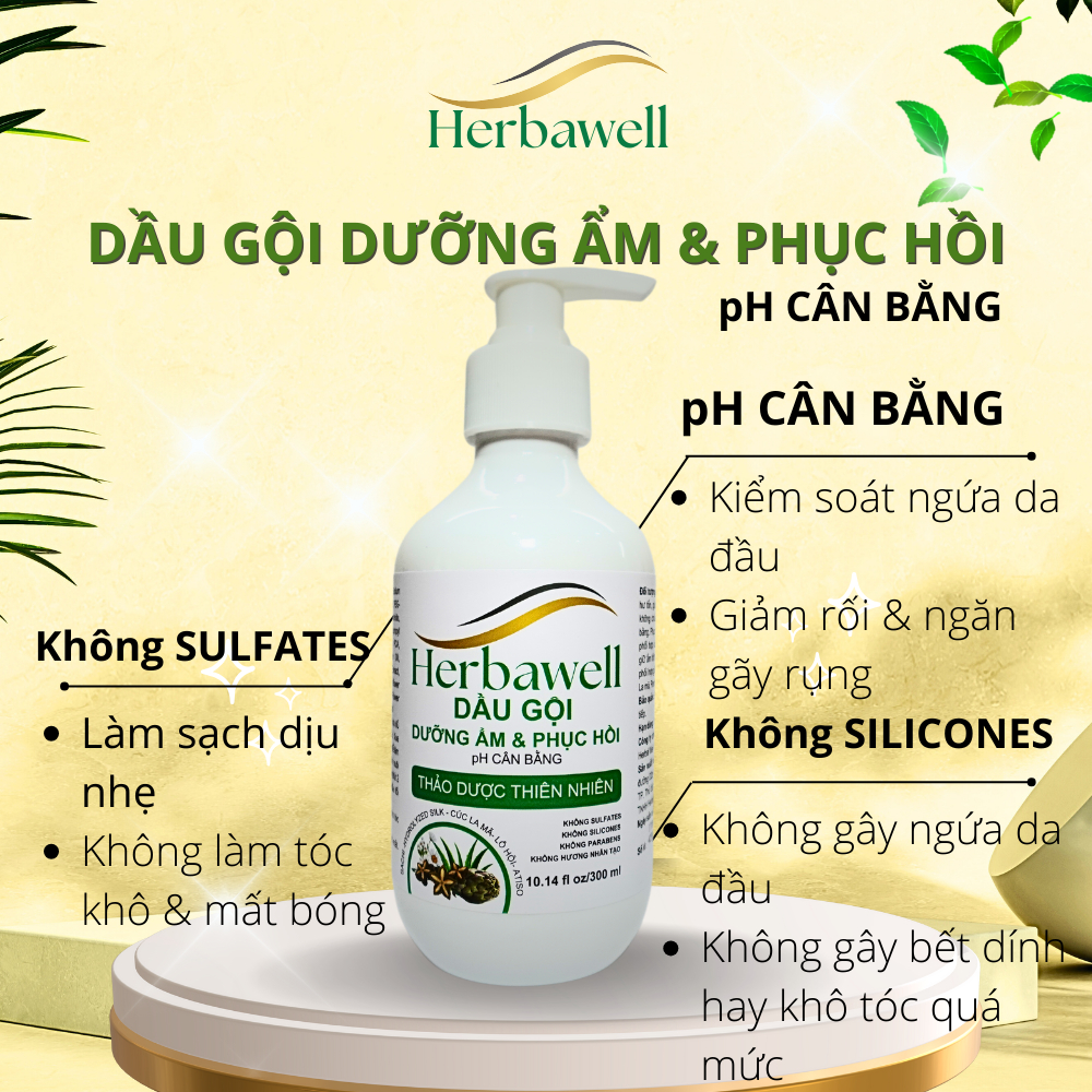 Dầu gội dưỡng ẩm & phục hồi Herbawell 300 ml pH cân bằng - Không Sulfate, Không Silicones, Không hương nhân tạo