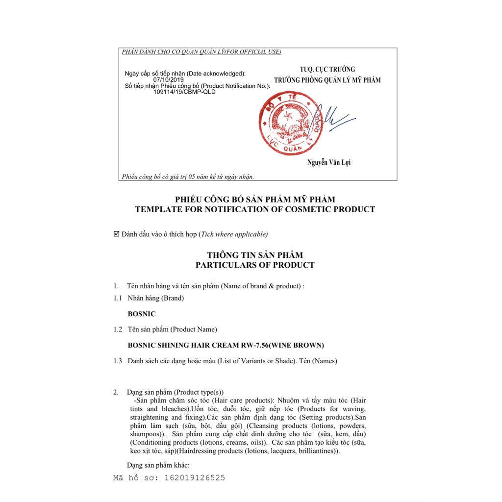 THUỐC NHUỘM MÀU THỜI TRANG BOSNIC 150ML