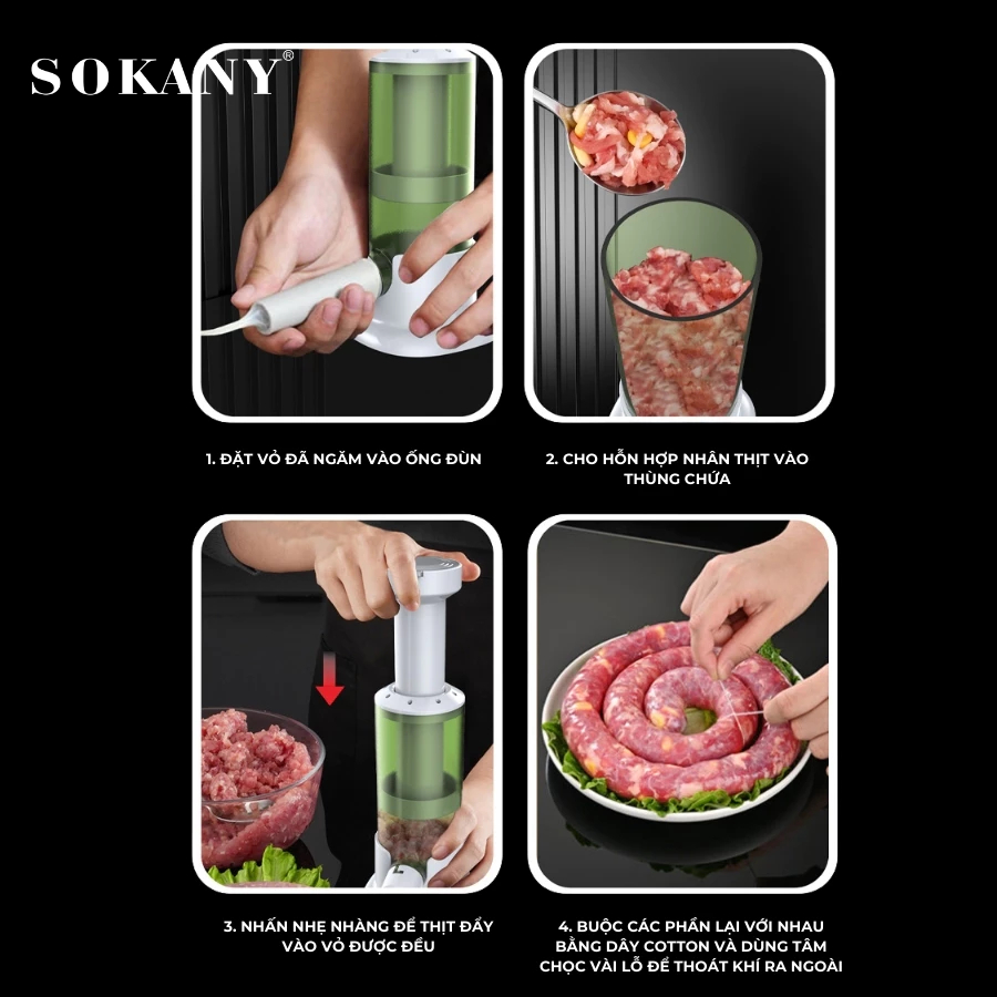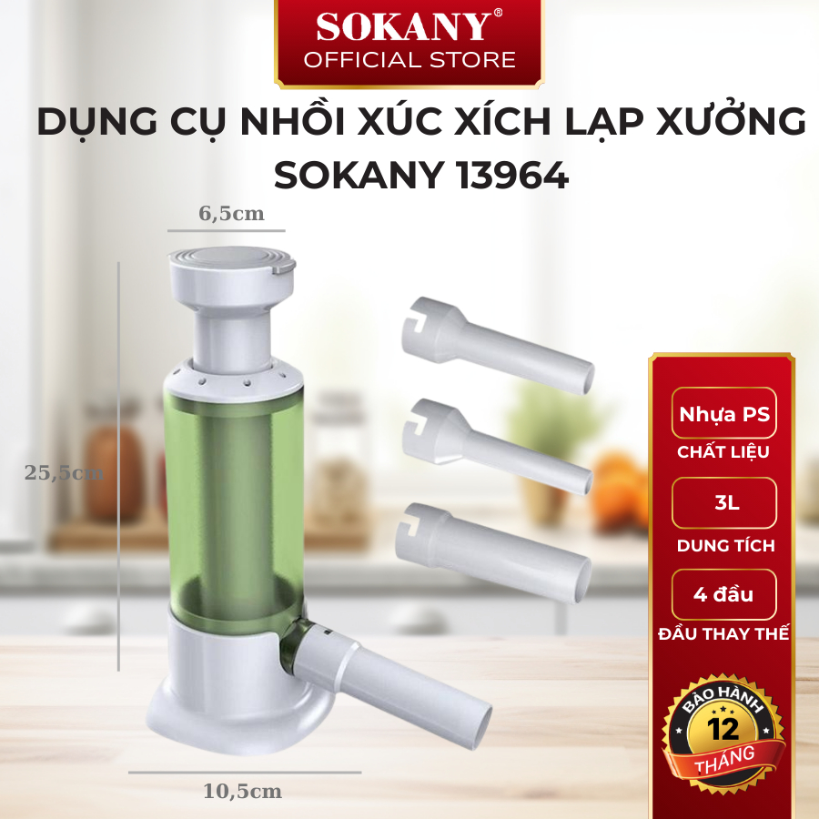 Dụng cụ nhồi xúc xích lạp xưởng đa năng Sokany 13964 máy làm xúc xích lạp xưởng 4 đầu nhồi thay thế