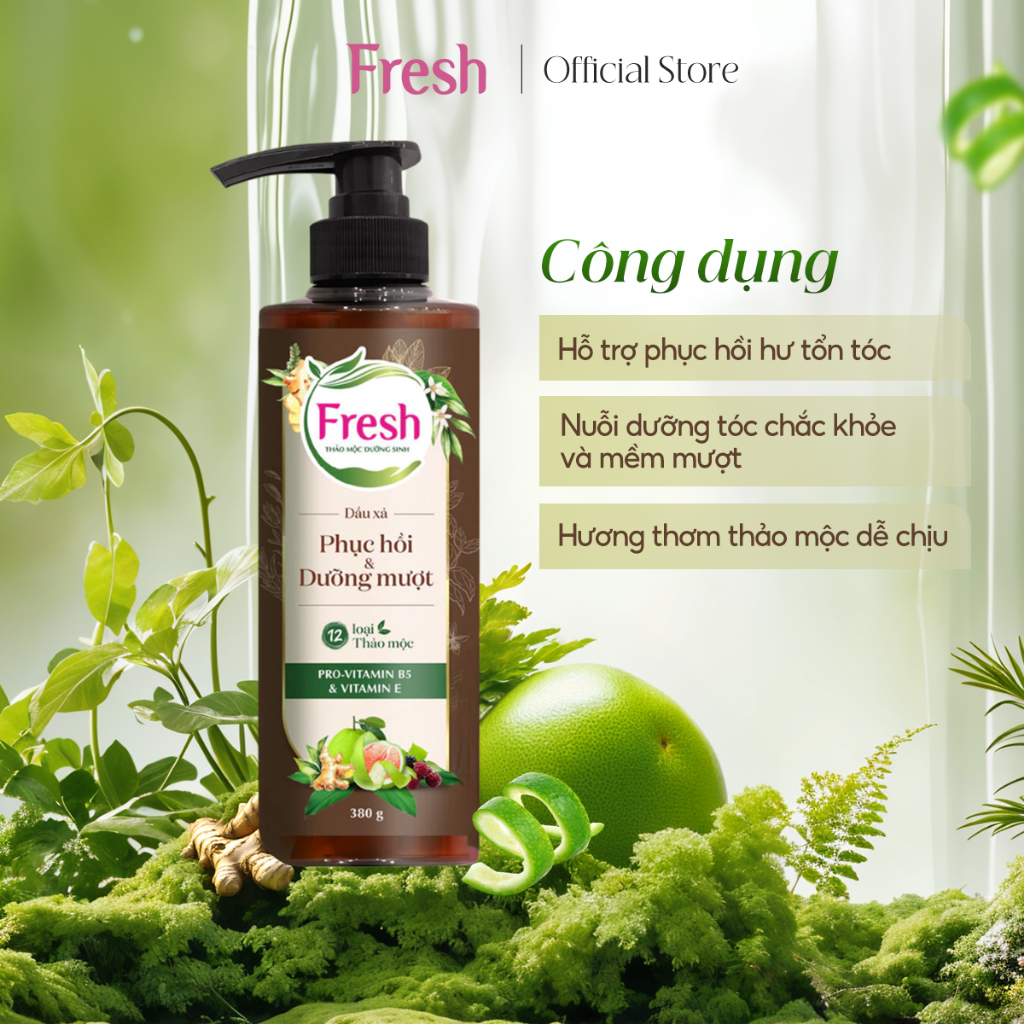 Combo Dầu Gội + Dầu Xả FRESH Thảo Mộc Dưỡng Sinh Sạch Gàu Mềm Mượt 480g + Phục Hồi Và Dưỡng Mượt 380g