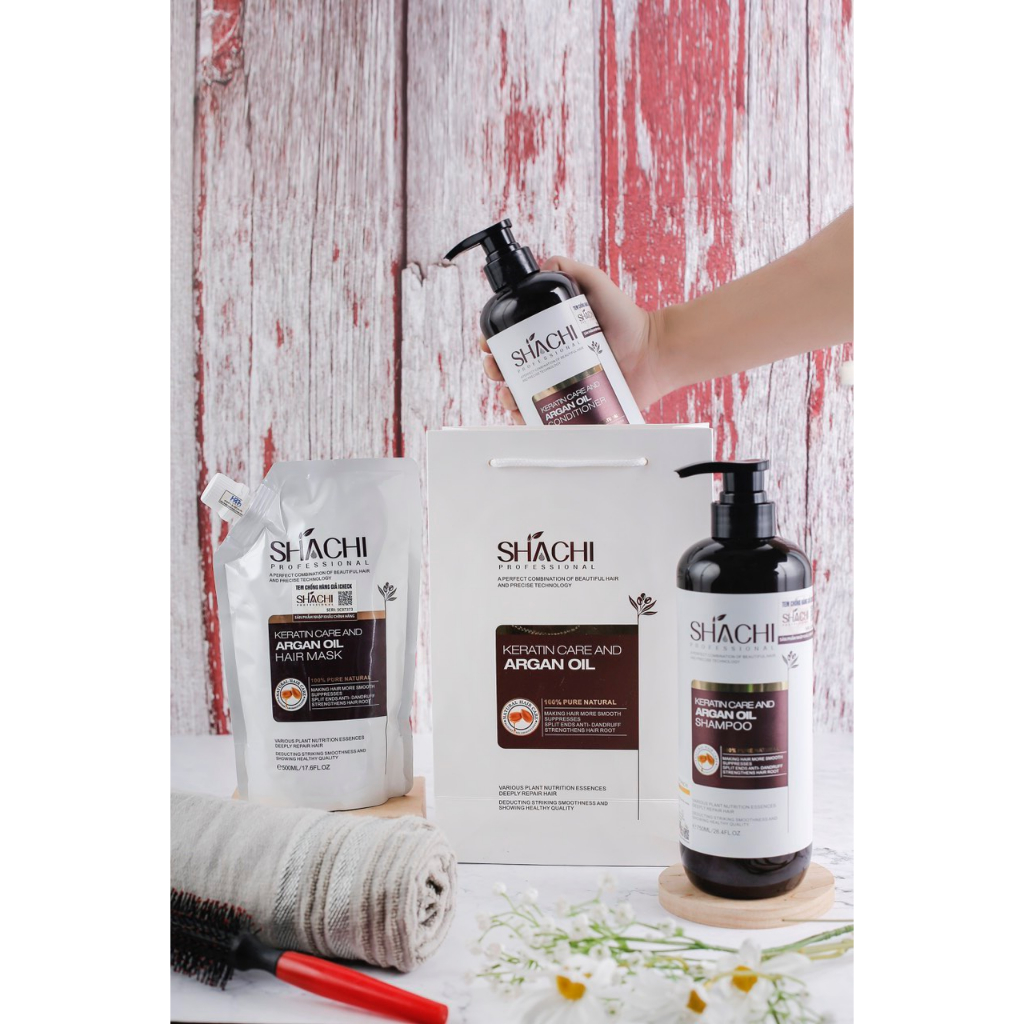 Bộ Dầu Gội Xả Dưỡng Sinh SHACHI Chiết Xuất Dầu Argan, Keratin Phục Hồi Tóc Hư Tổn Nặng 800ml - Anh Thư Cosmetics