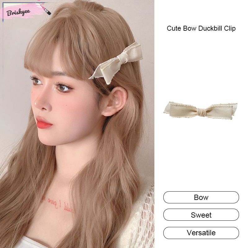 🎶Kẹp tóc nơ ren màu trơn phong cách cổ điển Y2k dễ thương