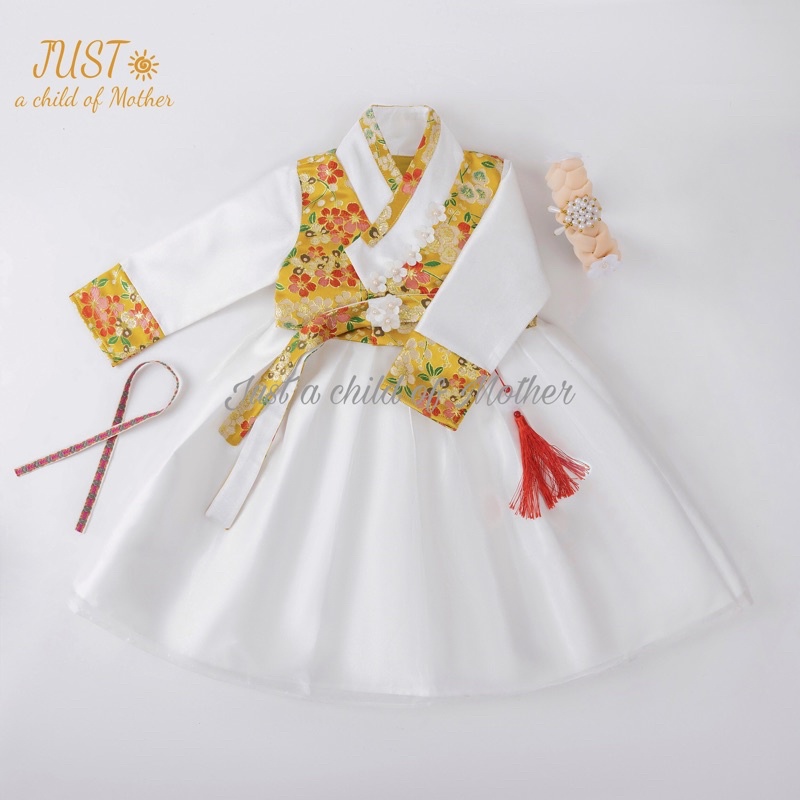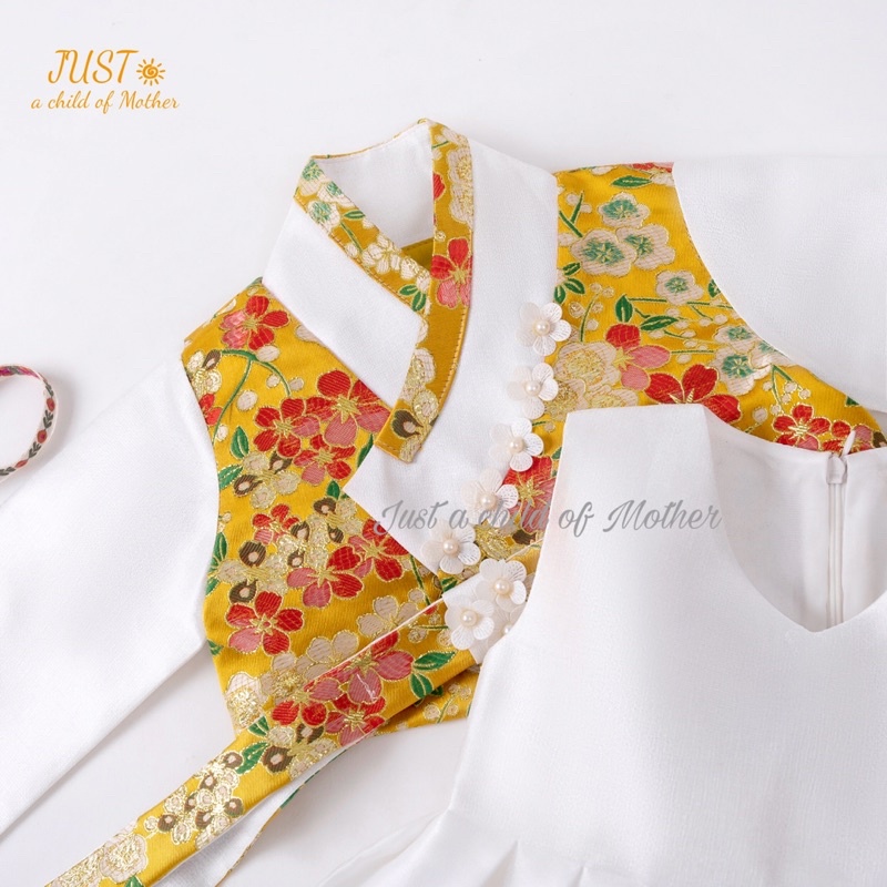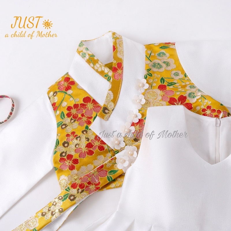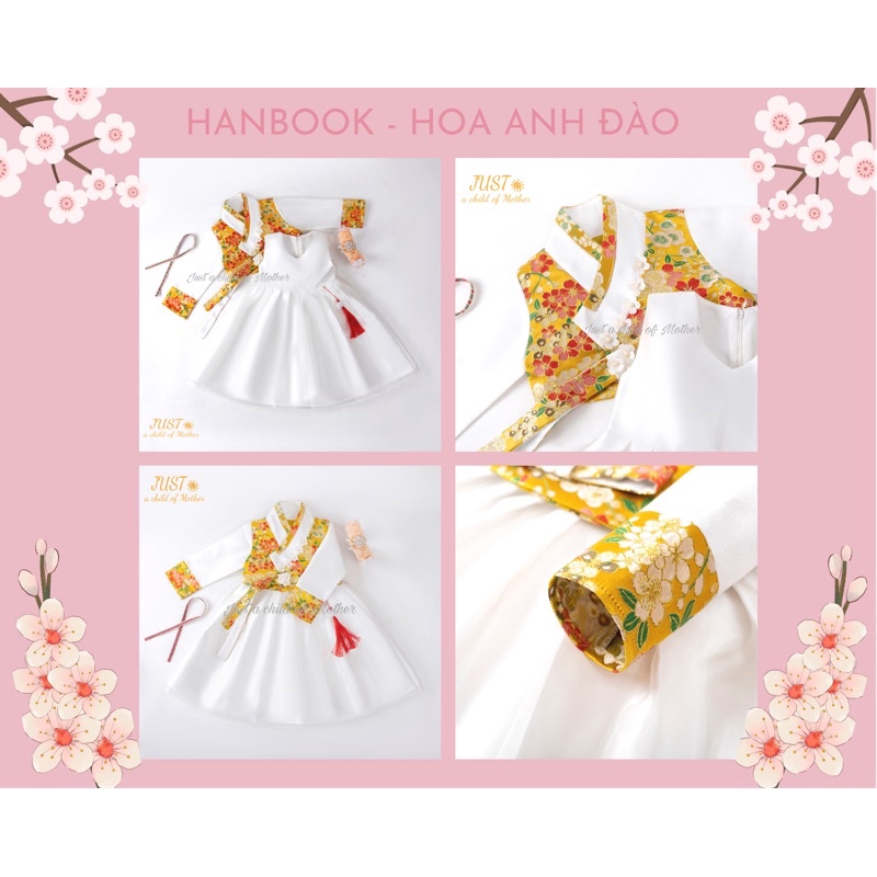 HanBok Hoa anh đào cho bé gái, trang phục truyền thống Hàn ,Vải gấm Thượng Hải cao cấp