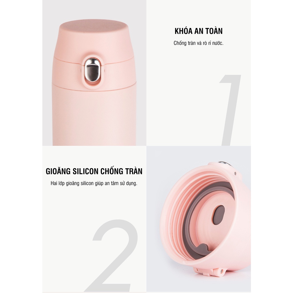 Bình giữ nhiệt LocknLock 500ml Featherlight One Touch LHC3257 màu trắng , mở nắp một chạm - K-MALL