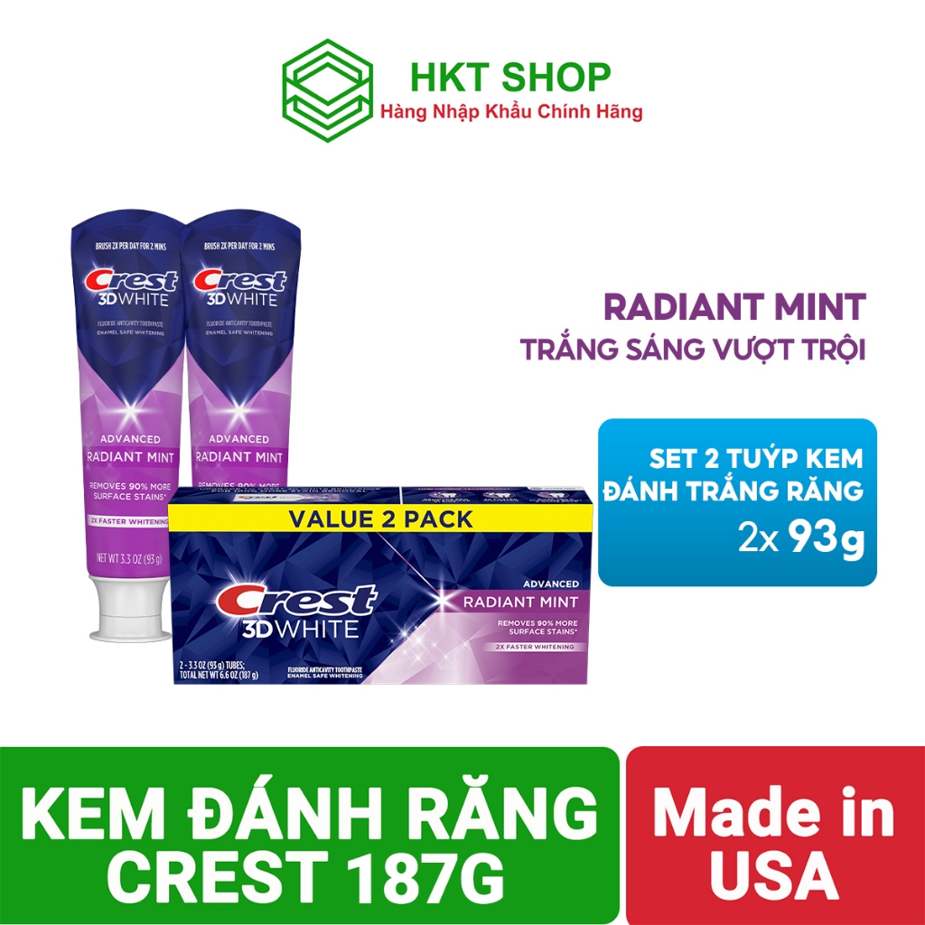 Kem đánh răng CREST 3D WHITE Mỹ_Trắng răng vượt trội- HKT Shop