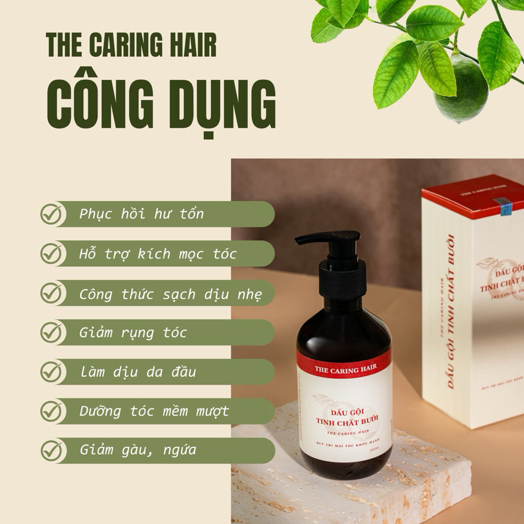 [TÓC THƯA, HÓI] Dầu gội tinh chất Bưởi The Caring Hair hỗ trợ mọc tóc, giảm dầu, dưỡng tóc chắc khoẻ