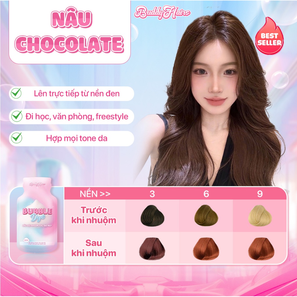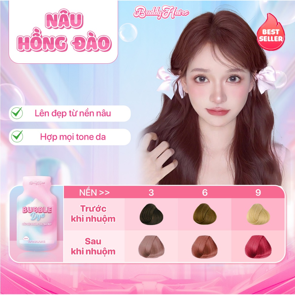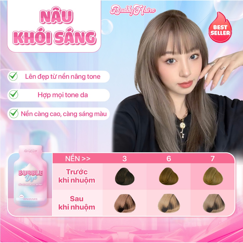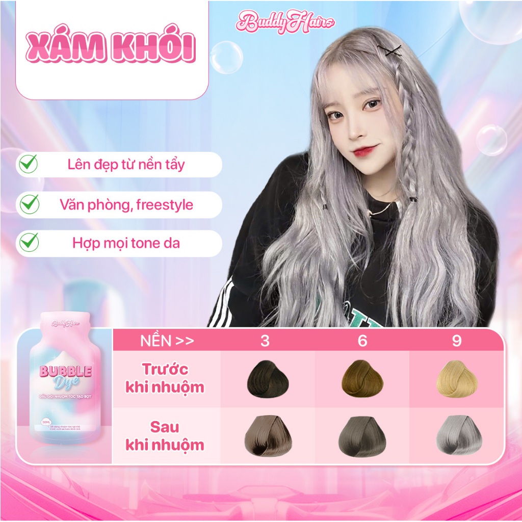 Dầu gội nhuộm tóc tạo bọt, thuốc nhuộm tóc tạo bọt Bubble Dye 25+ màu nhuộm đa dạng chiết xuất lành tính | Buddyhairs