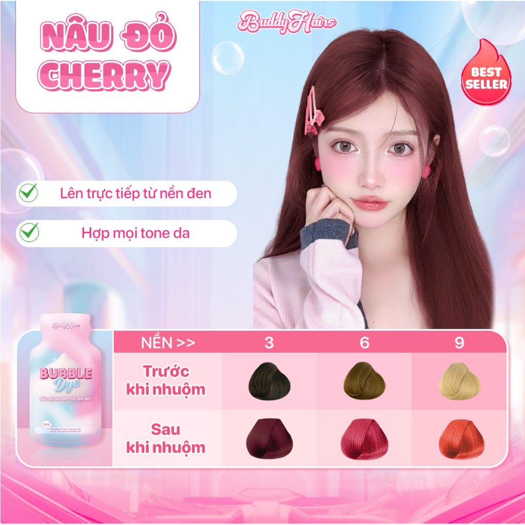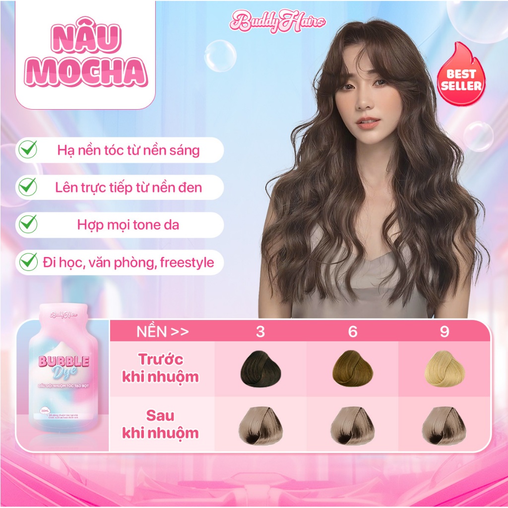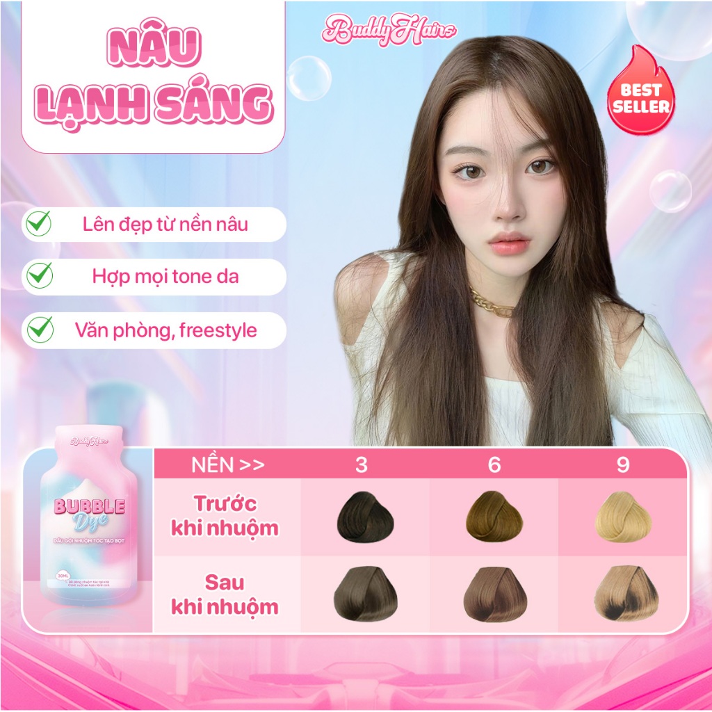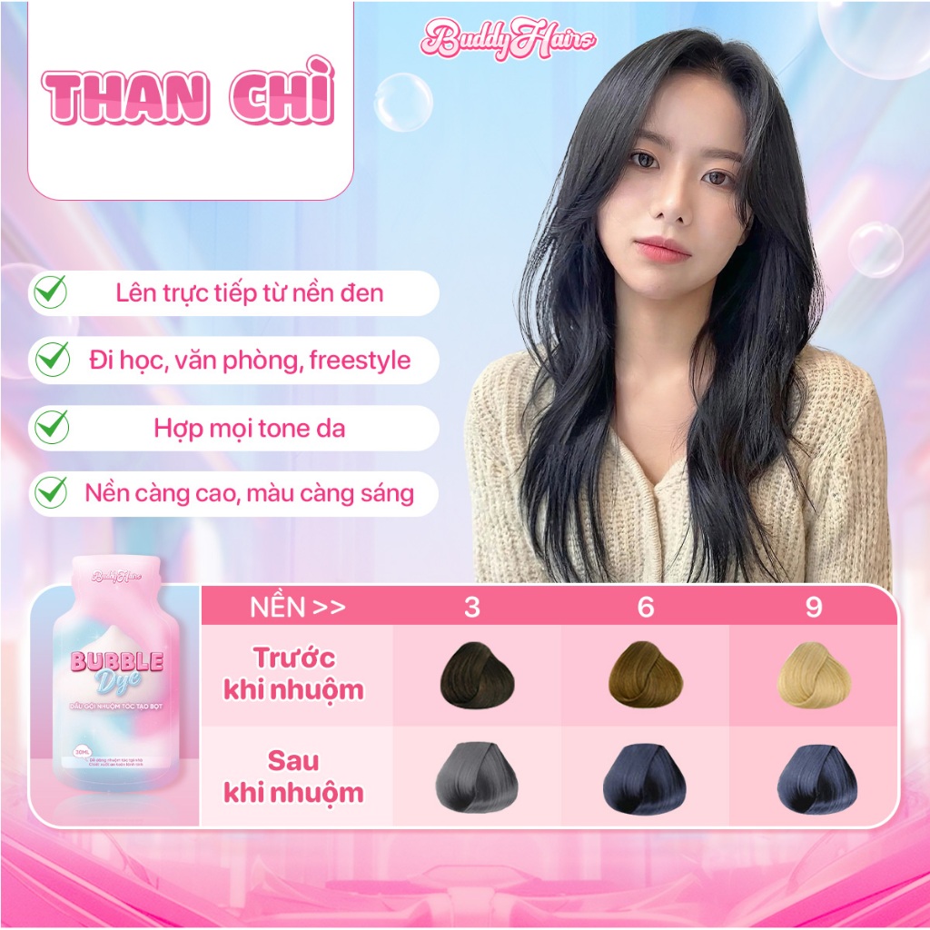 Dầu gội nhuộm tóc tạo bọt, thuốc nhuộm tóc tạo bọt Bubble Dye 25+ màu nhuộm đa dạng chiết xuất lành tính | Buddyhairs