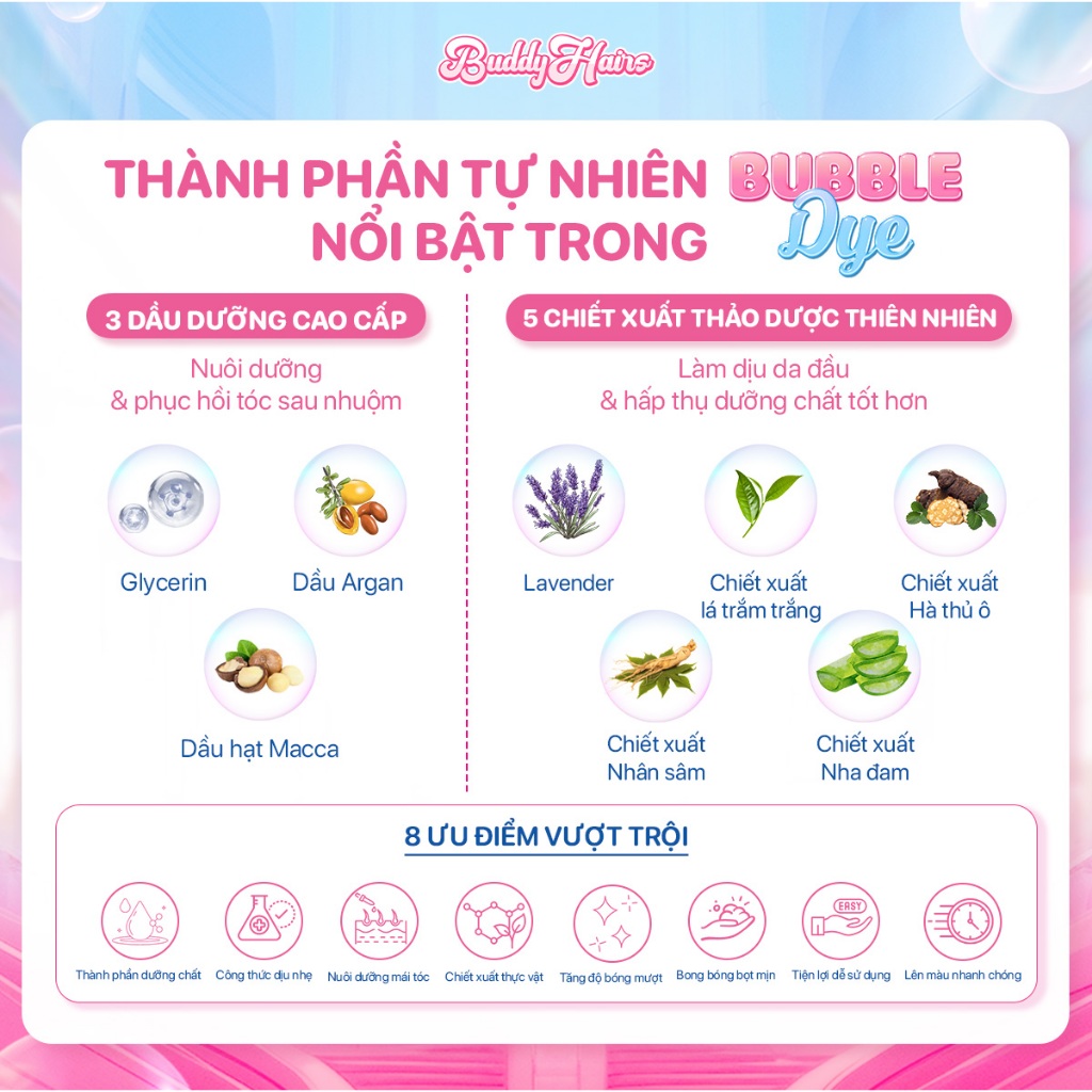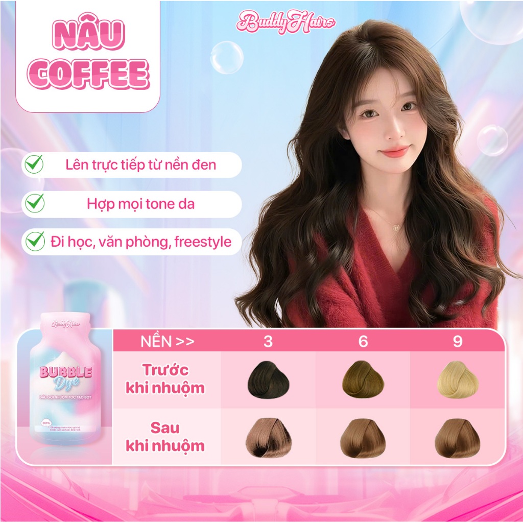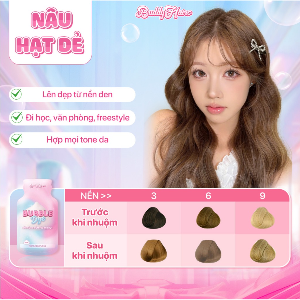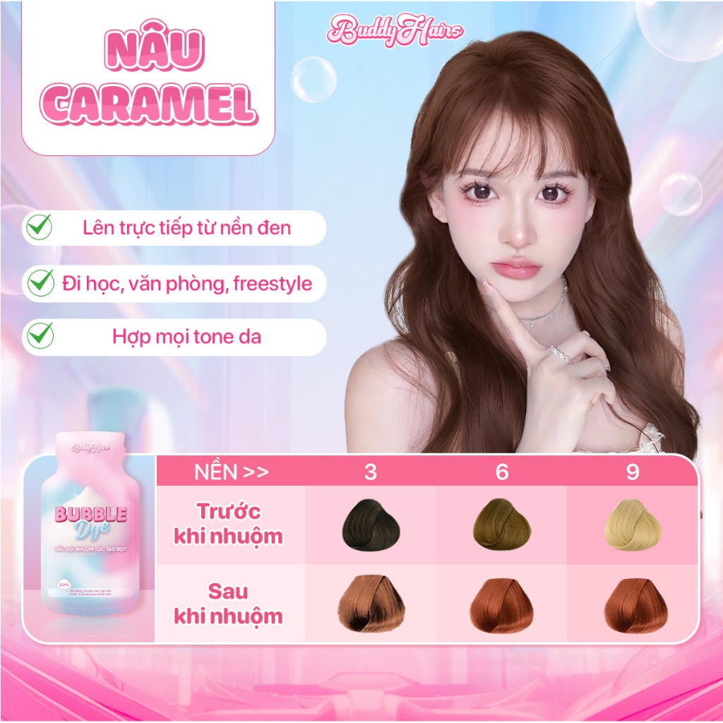 Dầu gội nhuộm tóc tạo bọt, thuốc nhuộm tóc tạo bọt Bubble Dye 25+ màu nhuộm đa dạng chiết xuất lành tính | Buddyhairs
