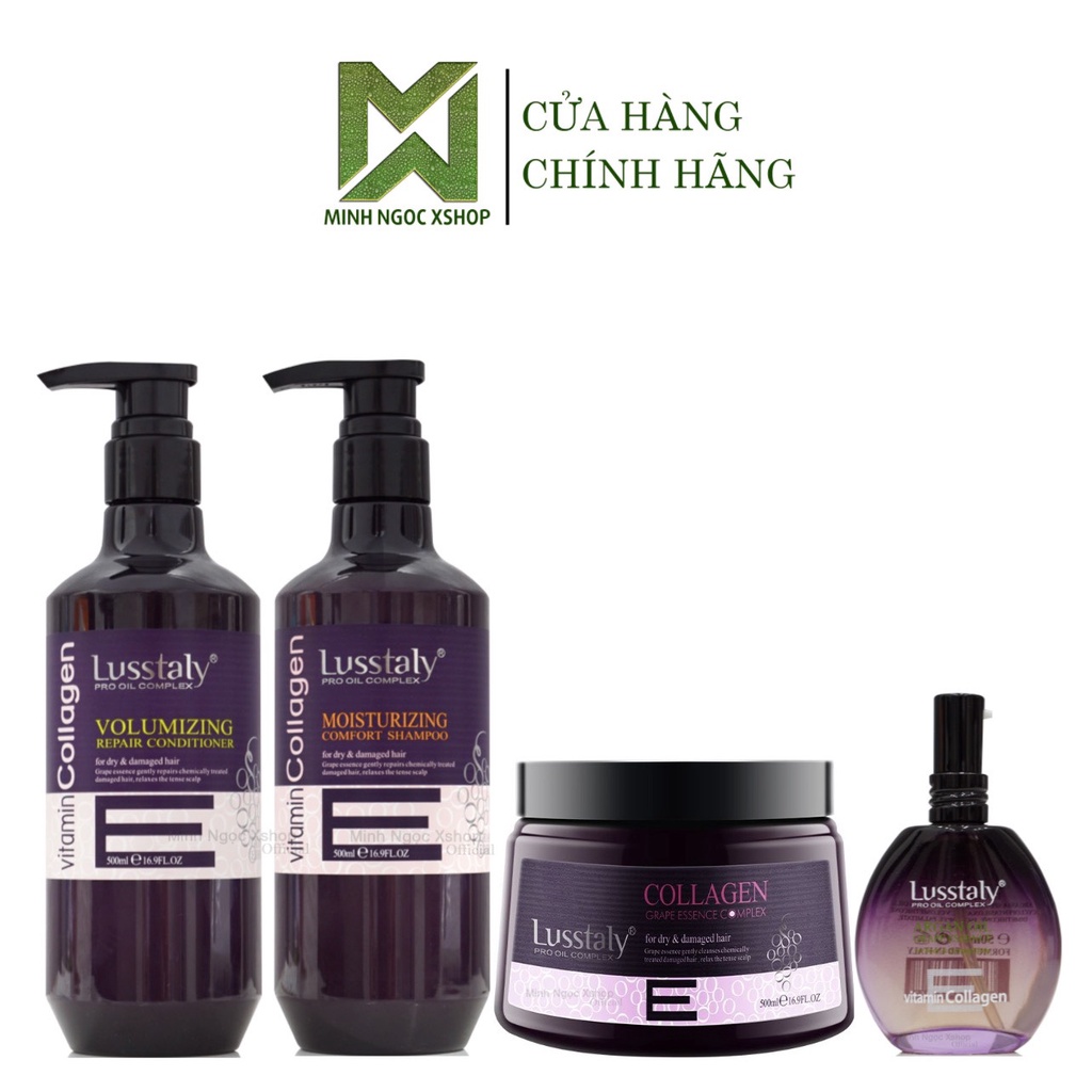 Bộ dầu gội, xả, kem ủ tóc, tinh dầu Lusstaly Vitamin E 50ML - 800ML, phục hồi siêu mượt chuẩn salon tại nhà