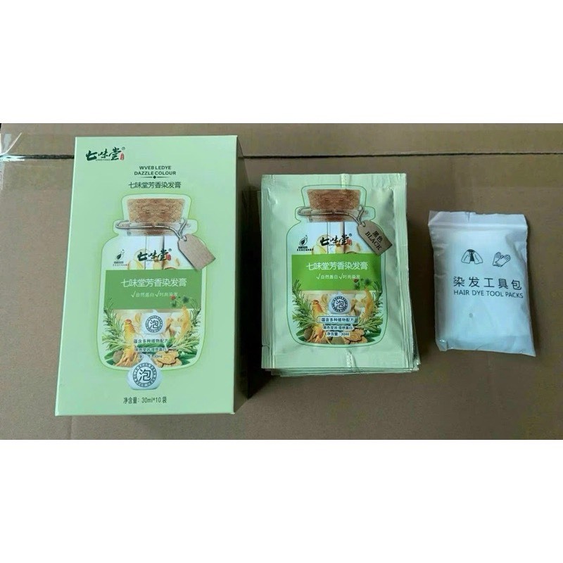(Hộp 10 Gói) Dầu Gội Nhuộm Màu Tóc Thảo Dược, Dầu Gội Phủ Bạc Tóc, Nuôi Dưỡng Tóc Khoẻ Óng Mượt