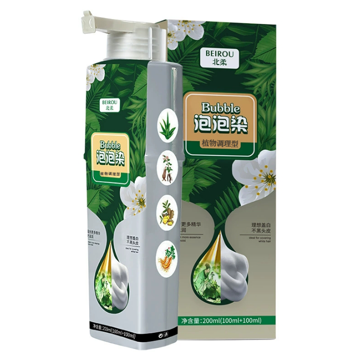 Thuốc nhuộm tóc bong bóng thực vật tự nhiên 200 ML dành cho dầu gội nhuộm màu tóc xám. (Đen))