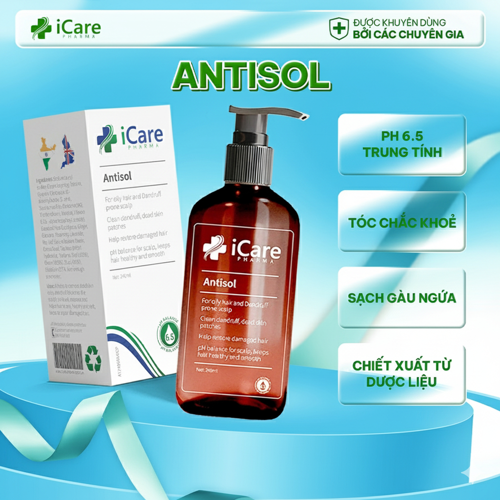 Dầu Gội iCare Pharma Antisol - Dưỡng Chất Thảo Mộc, Giúp Da Đầu Sạch Gầu, Nấm, Tóc Sạch Suôn Mượt