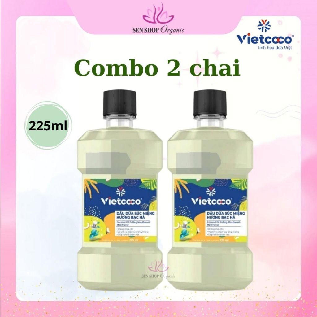 Dầu dừa súc miệng VIETCOCO hương bạc hà thơm mát giúp răng chắc khỏe, ngừa sâu răng - Chai 225ml