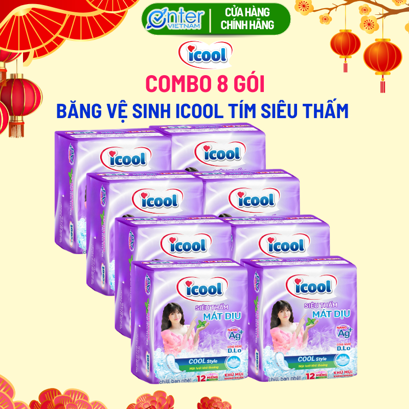 Băng Vệ Sinh Icool Siêu Thấm Mặt Lưới Khô Thoáng Bạc Hà Mát Dịu (8 Gói)