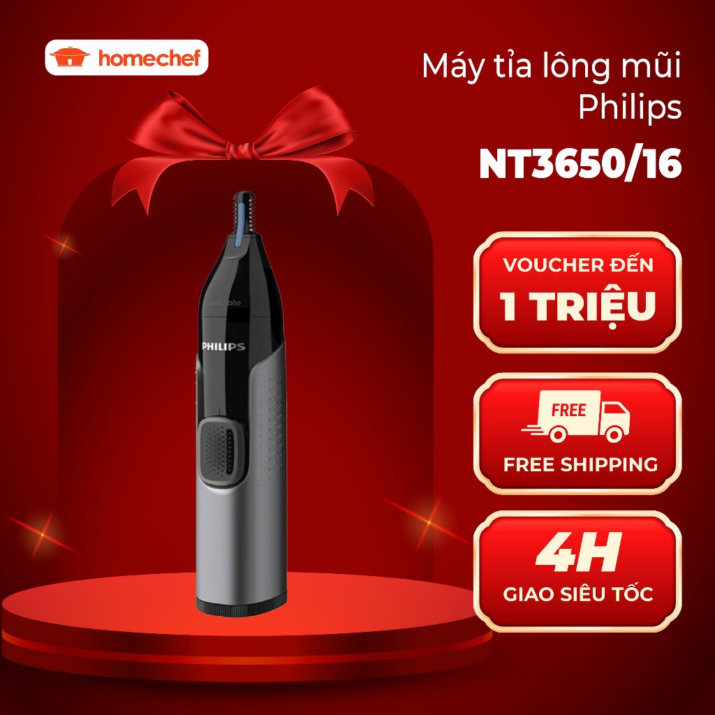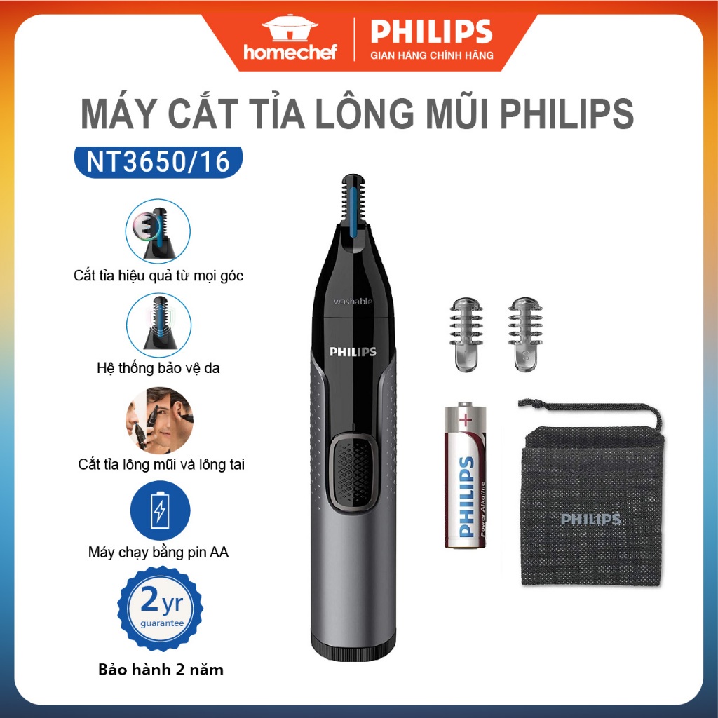 Máy tỉa lông mũi, tai và lông mày Philips NT3650, an toàn cho da, bảo hành 2 năm