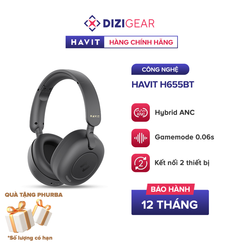 Tai Nghe Headphone Bluetooth HAVIT H655BT, Bluetooth 5.3, ANC, Nghe Đến 65 Giờ - Chính Hãng Dizigear